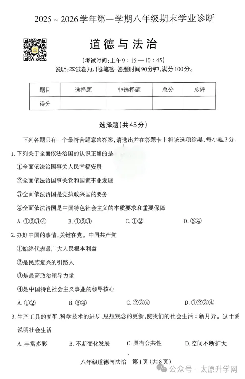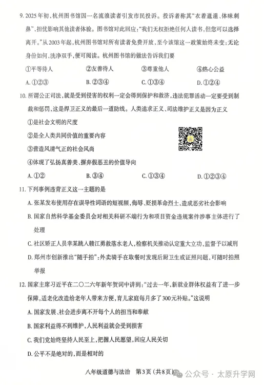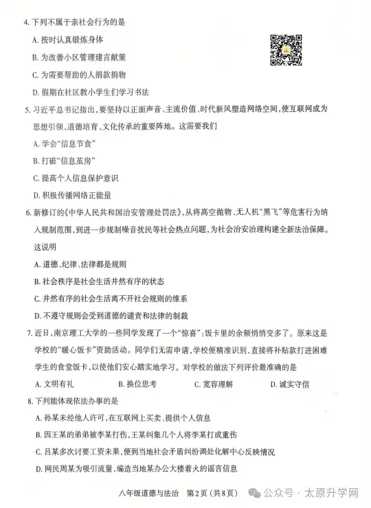 初二期末道法试题