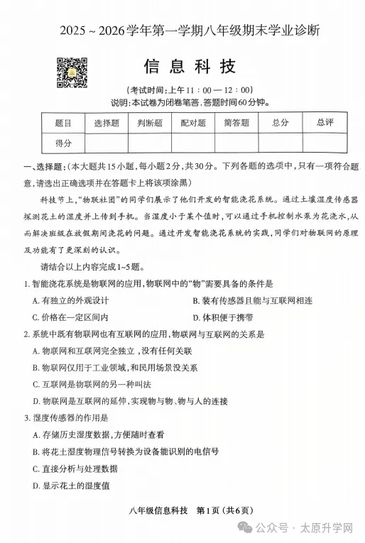 初二期末信息试题