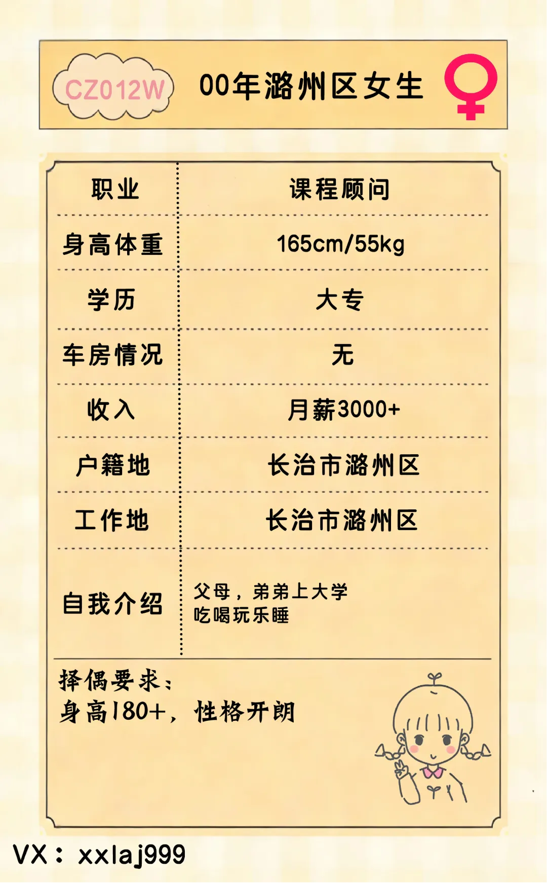 【CZ012W】00年长治市潞州区女生,职业是课程顾问,可可爱爱的女生