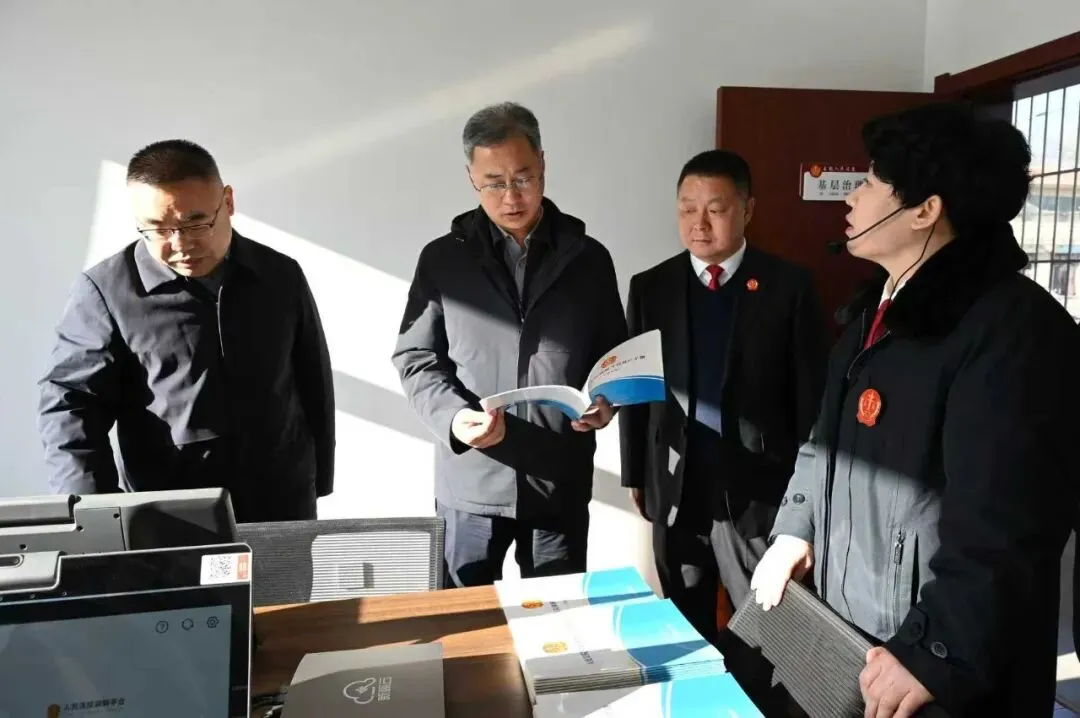 徐尚勇一行首站来到王陶人民法庭,实地察看了审判法庭、调解室等场所,深入了解法庭基础建设、人员配备及服务基层群众情况。随后,前往沁源法院机关,先后参观了诉讼服务中心、立案庭及荣誉陈列室等场所。在诉讼服务中心,徐院长详细询问了“一站式”多元解纷和诉讼服务体系建设、案件受理流程、便民利民举措的落实情况;在立案庭,关切了解了审判质效指标、主要案件类型及特点;在荣誉陈列室,认真听取了法院发展历程及文化建设情况。