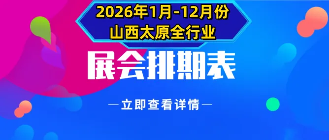 展会排期网-zhxxpq.com花费大量人力物力,坚持为大家整理编辑各地展会排期表,只因为我们知道这是您想要的信息,我们坚持做一个有内容、有价值的网络服务平台。据不完全统计,2026年1月-12月份山西太原全行业已知大小规模展会活动有近20场+...... 2026年即将有众多大牌展会悉数登场,行业涵盖了餐饮、健康、家博会、清洁用品、烘焙、保健、跨境电商、食品、食品设备、纺织、酒店用品、跨境电商、半导体、五金、铁路轨道、汽车、化妆品、服装、机床、清洁用品、珠宝、宠物、家居、茶博会、宠物、农机、美容展等多个领域。哪些精彩展会值得您重点关注和参与?敬请持续留意我们后续发布的详细展会信息排期预报哦!