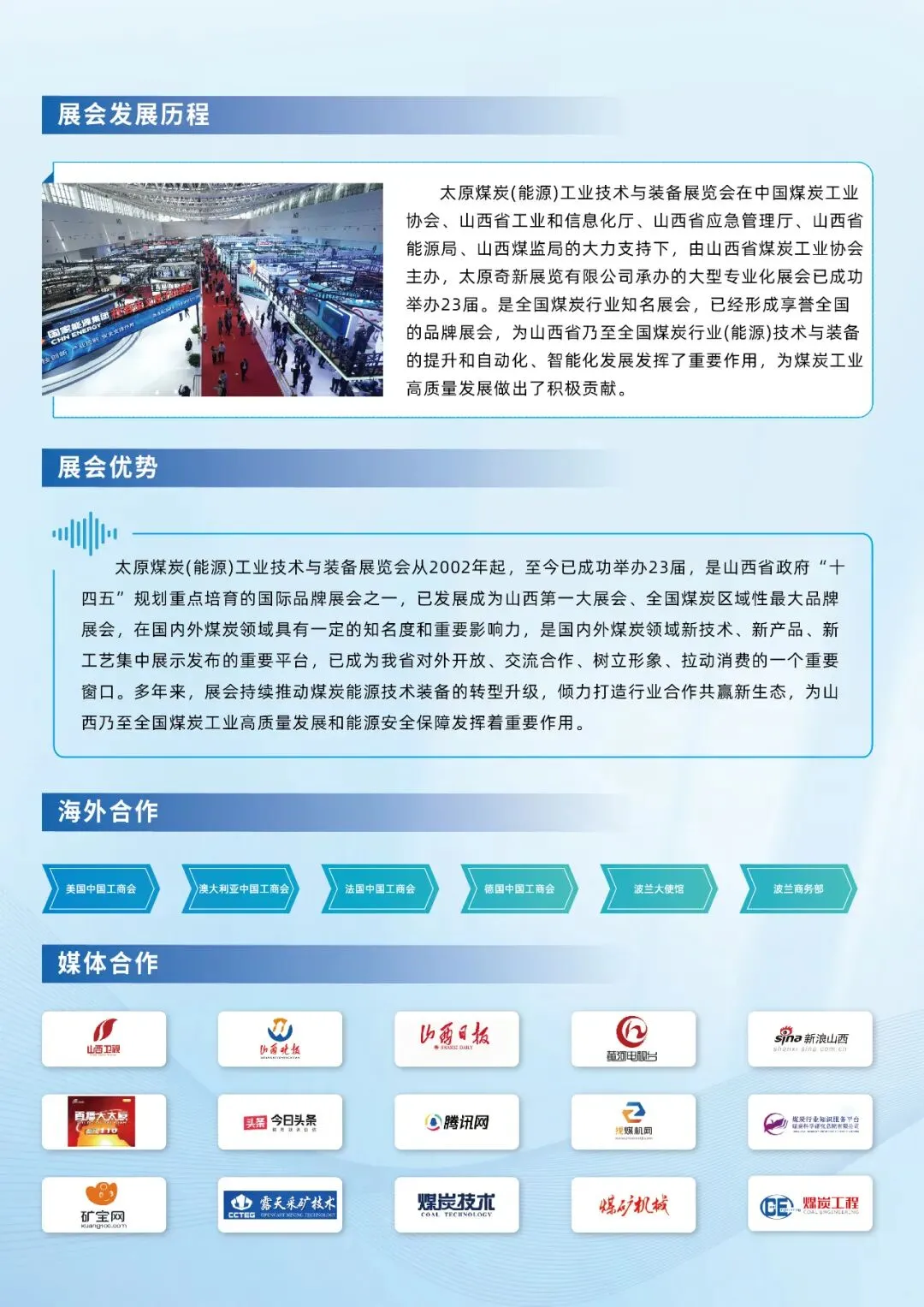 第二十四届太原煤炭(能源)工业技术与装备展览会组委会诚邀煤炭及能源行业各类中外高新技术研发推广单位和煤炭工业机械设备厂商踊跃参展,共同携手创造煤炭能源工业的美好未来。