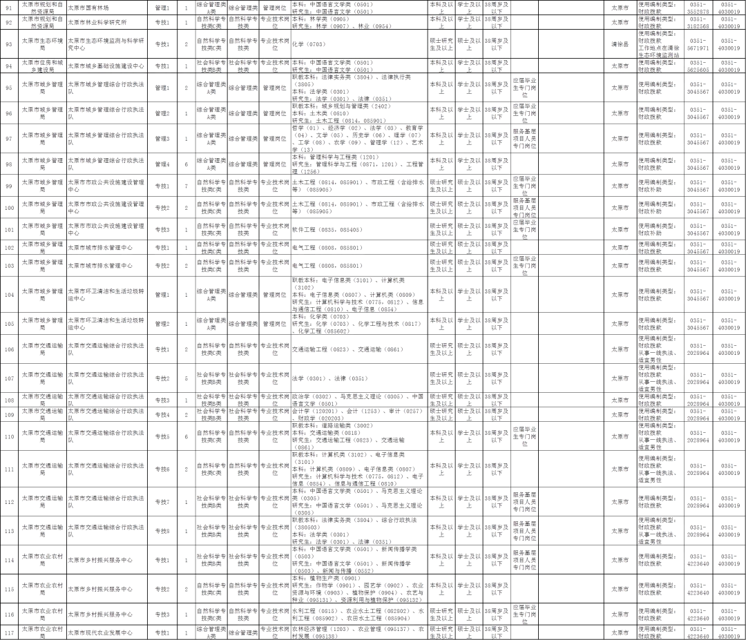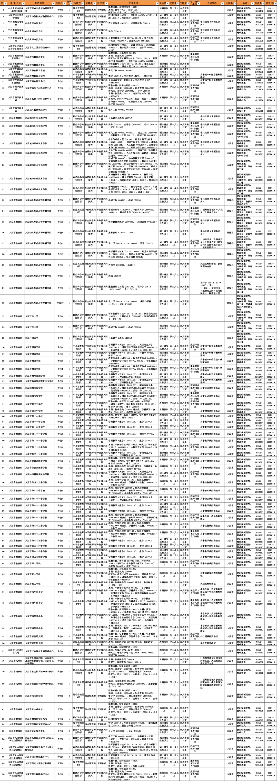 太原市事业单位2026年公开招聘工作人员岗位表
