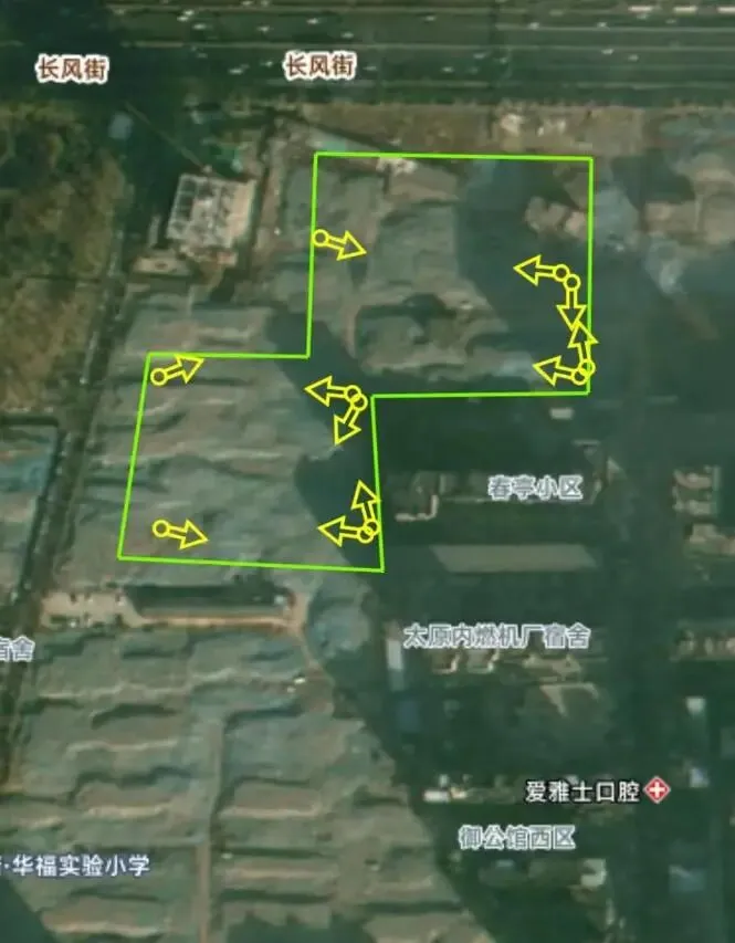 2020年9月,太原市规划和自然资源局公示了地块控规修改必要性报告。次年6月,杨家堡南片区连片改造用地控规方案正式公示。规划将长风街与平阳路交汇处西南角划为约38亩的大型商业用地,其余主要为二类住宅用地,其中包含一处9亩的幼托规划,住宅部分容积率普遍较高。2021年12月,小店区政府下达了国有土地上房屋征收公告。