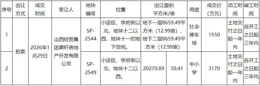 SP-2549成交价3170万元,位于小店区,学府街以北、地块十二以西,出让面积为20270.89平方米(30.41亩),用于建造中小学。