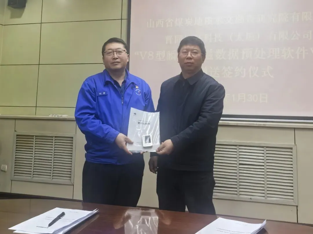 1月30日,晋同地环科技(太原)有限公司向水勘院有限公司物探技术中心赠送“V8型瞬变电磁数据预处理软件V1.0”签约仪式在水勘院有限公司隆重举行。公司副总经理田卫东主持仪式并致辞,副总经理陈刚与晋同地环科技总工程师裴建国分别代表双方签署《软件赠送协议》,相关部门人员参加仪式。