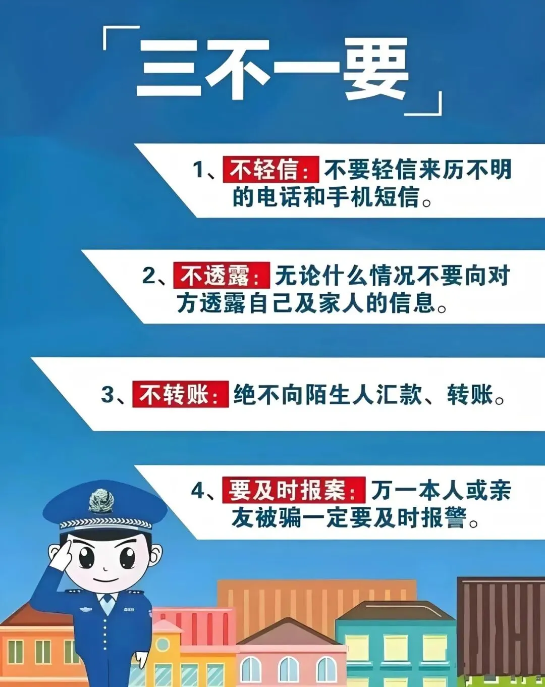 ▸冒充公检法诈骗:说到安全账户、身份泄露涉嫌违法、通缉令管制令、公检法之间转接电话、找个封闭地方《旅馆)接受审查、要求提供银行密码验证码的都是诈骗。