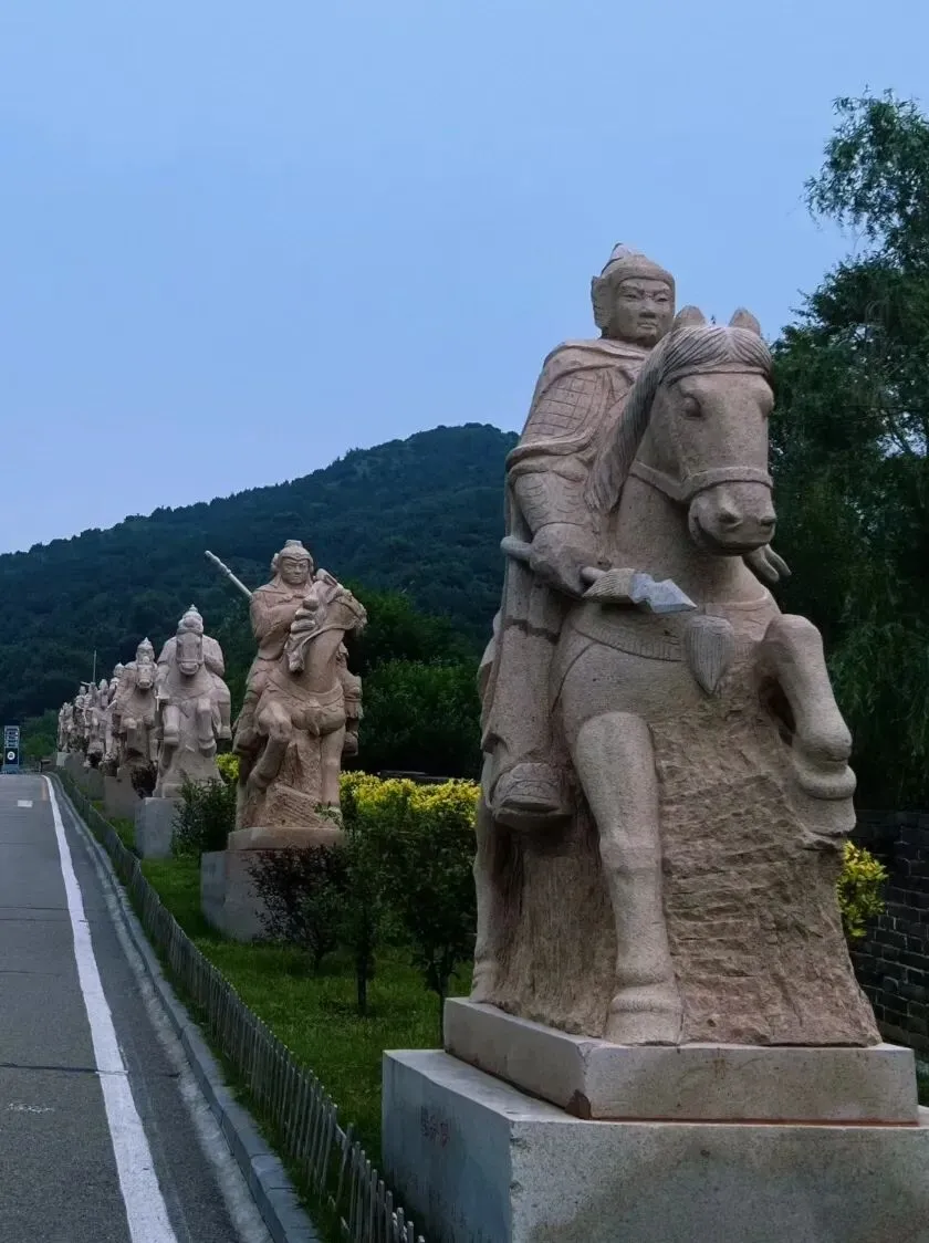 景区门口看到杨家将一门忠烈的塑像一字排开,很有气势。从城门进入,需要先上台阶再下来,这时会看到还有一座瓮城。