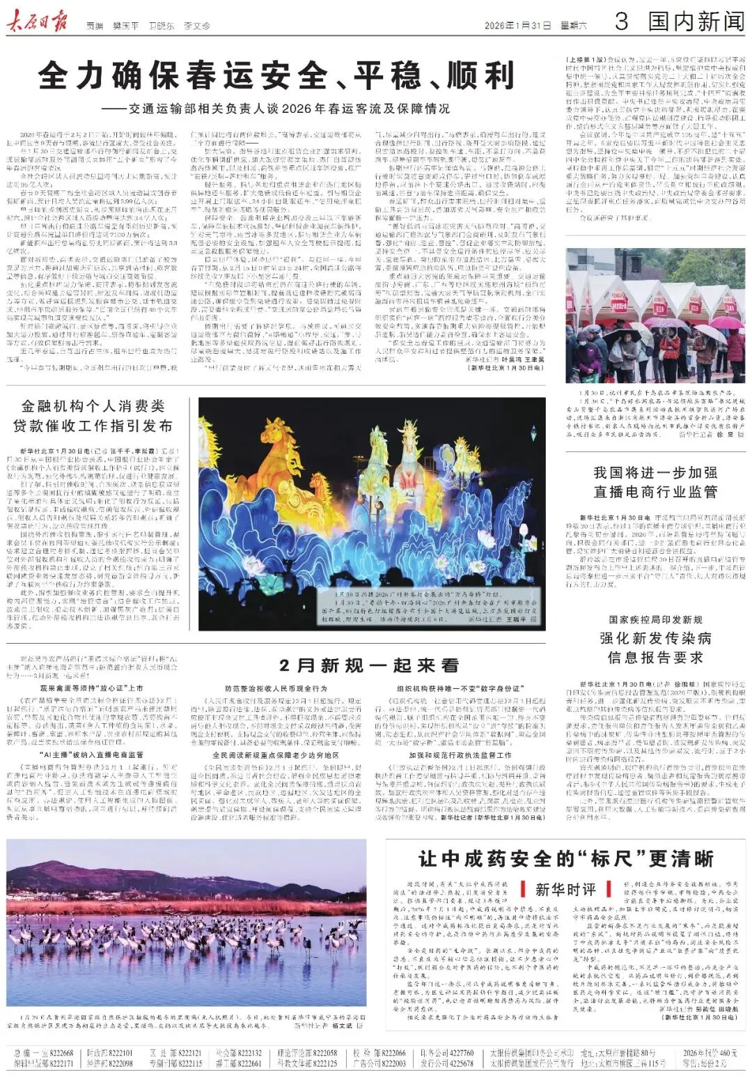 ▶《太原日报》2026年1月30日版面速览