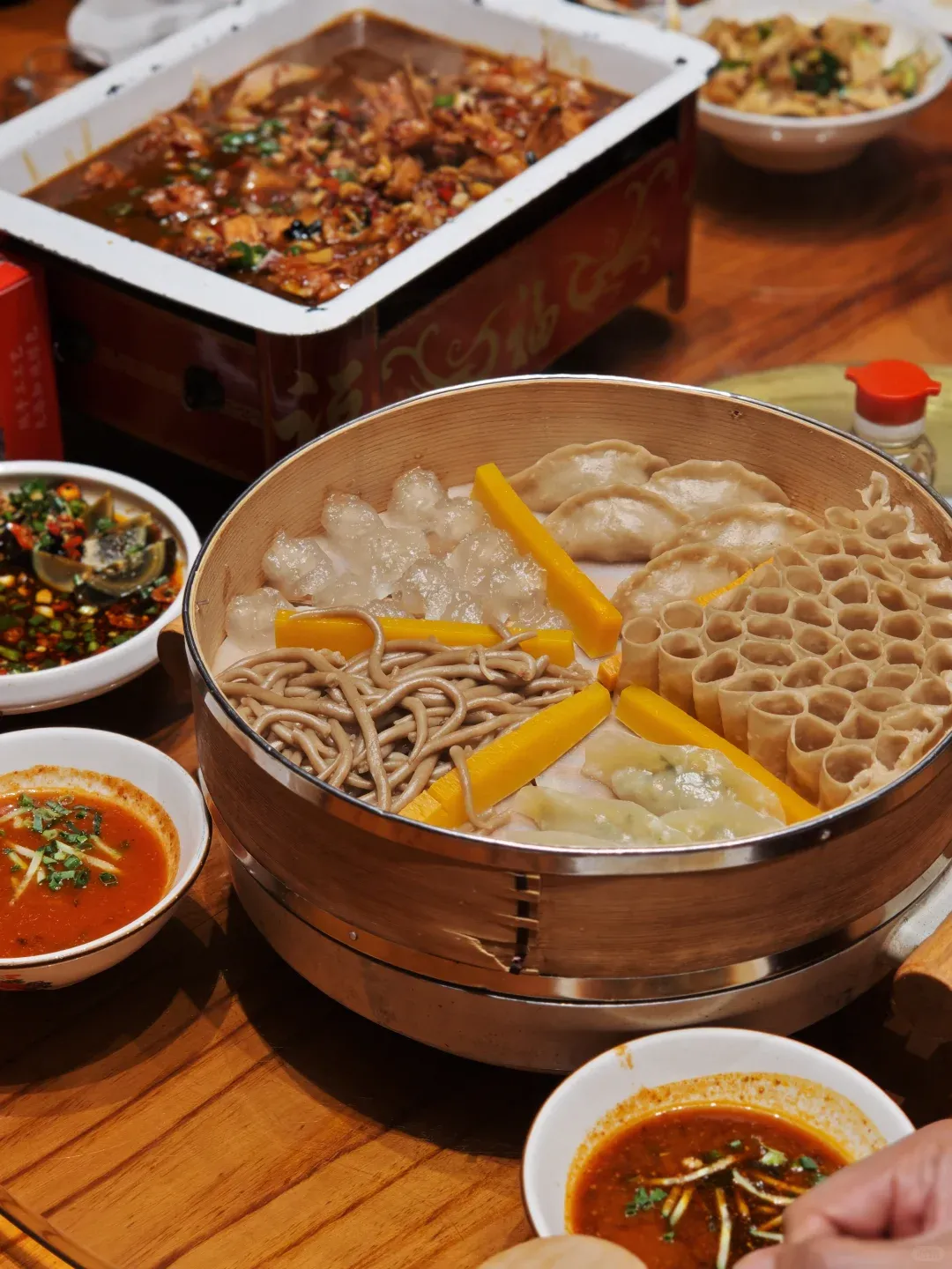 中午街头,来碗莜面栲栳栳。面条捏成环形,蒸熟蘸酱,麦香混着蒜香,一口下去筋道爽滑。晚上就近找家汾阳小馆,点一盘碳火烙饼,再斟一盏汾酒。那种清冽的口感,像山风掠过喉咙,醒人。
