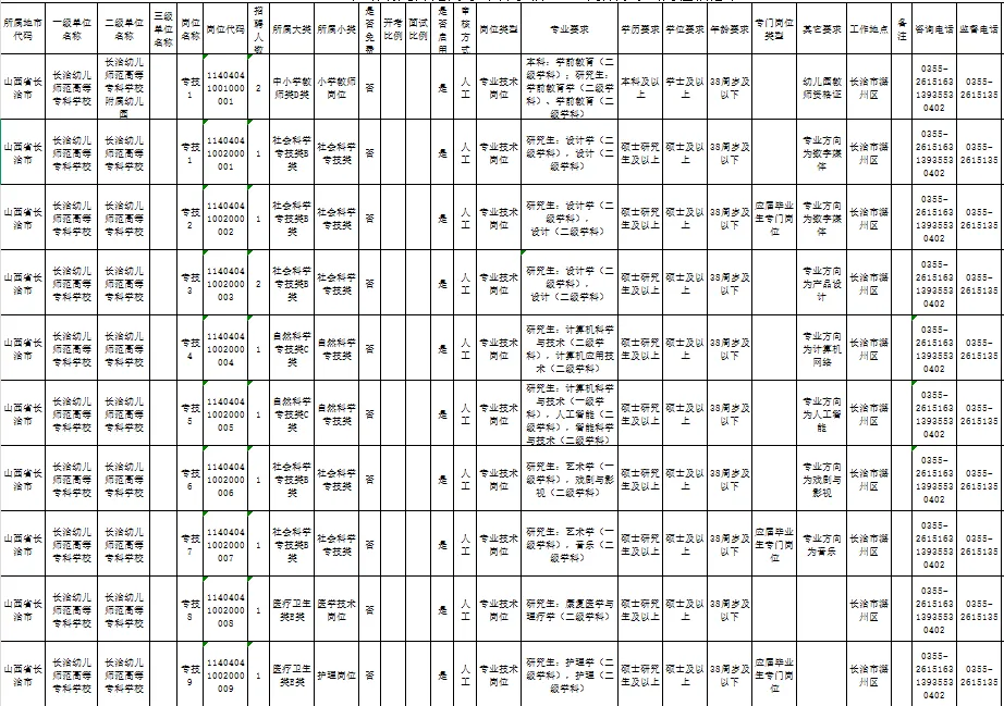 长治幼儿师范高等专科学校招聘全额事业编制教师12人(含附属幼儿园)!