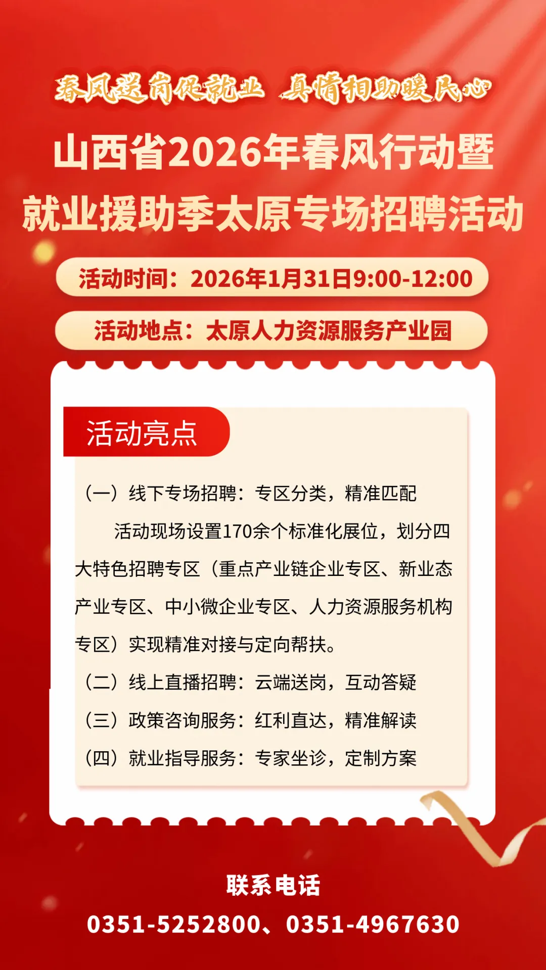 山西省2026年春风行动暨就业援助季太原专场招聘会1月31日启动