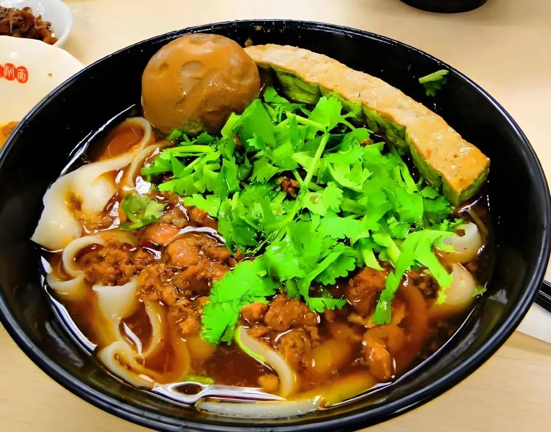 我去吃.刀削面,随便找的.一家路.边小.店。早饭.点人特.别多,拼桌.是肯.定的。我对面.坐了.个大哥,看样子是.刚下夜.班,面前摆.着一碗.面,还有俩.卤蛋。