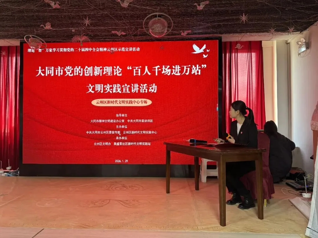 理论宣讲润人心,凝心聚力建新功。1月29日,大同市党的创新理论“百人千场进万站”文明实践示范宣讲暨“理论‘晋’万家”学习贯彻党的二十届四中全会精神巡回宣讲活动在平城区、云州区同步开展。9名经验丰富的宣讲员,紧扣党的二十届四中全会精神,用可感可知的鲜活案例传递理论温度,推动党的创新理论深入人心。