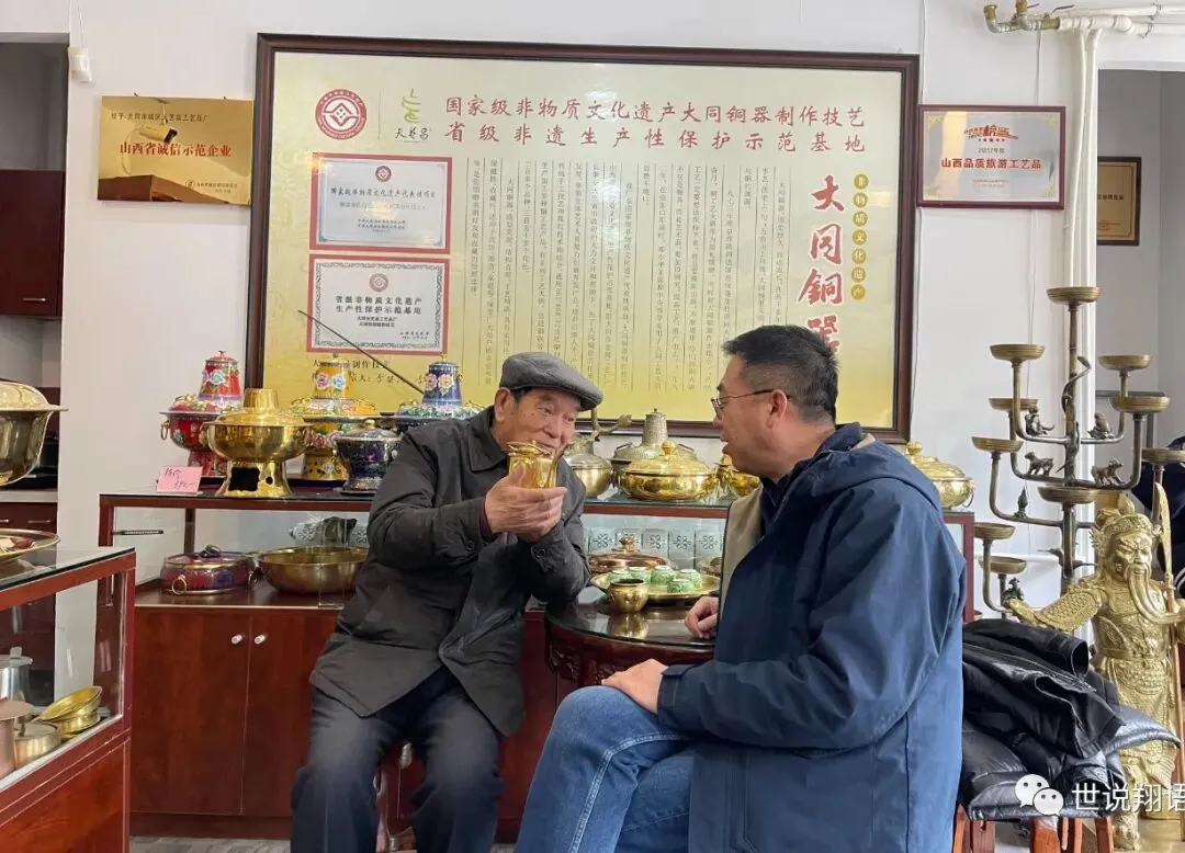 蓬皮杜的儿子阿兰蓬皮杜后来到大同的时候,我曾经陪着吃过几次家宴,也见到他获赠大同铜火锅后眼睛里闪光的惊喜和感动。如今已经86岁的大同铜器非遗传承人李安民老爷子,前些年见证了他腊月时节带着我们这些报社的小字辈们一起为后来获得吉尼斯记录认证的超大铜火锅研发制作,今年见证了他亲力亲为给央视摄制组讲解大同铜器历史渊源,他的眼睛里,闪动的是信念和坚持。