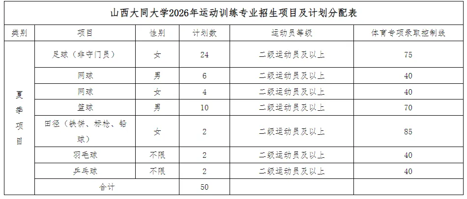 根据《体育总局办公厅 教育部办公厅关于印发<2026年普通高等学校运动训练、武术与民族传统体育专业招生管理办法>的通知》(体科字〔2025〕171号)文件精神,我校制定了2026年运动训练专业招生简章,现公布如下: