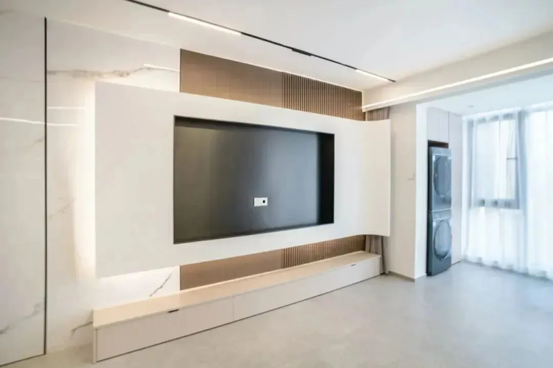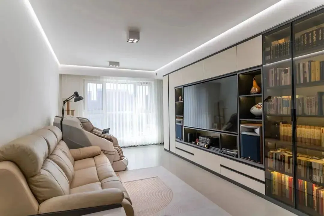 传统的大吊灯虽然气派,但往往光线分布不均,某些角落依旧昏暗。无主灯设计通过筒灯、射灯、灯带等多种光源组合,让每个区域都明亮舒适:例如客厅布置8个筒灯,光线柔和均匀;沙发后方加装射灯突出装饰画;电视墙暗藏灯带,能减少视觉疲劳。卧室灯光建议分控:床头壁灯方便起夜,天花板筒灯满足化妆、找物等需求。色温推荐3000K左右的暖黄光,比冷白光更温馨,也更有助于入睡。