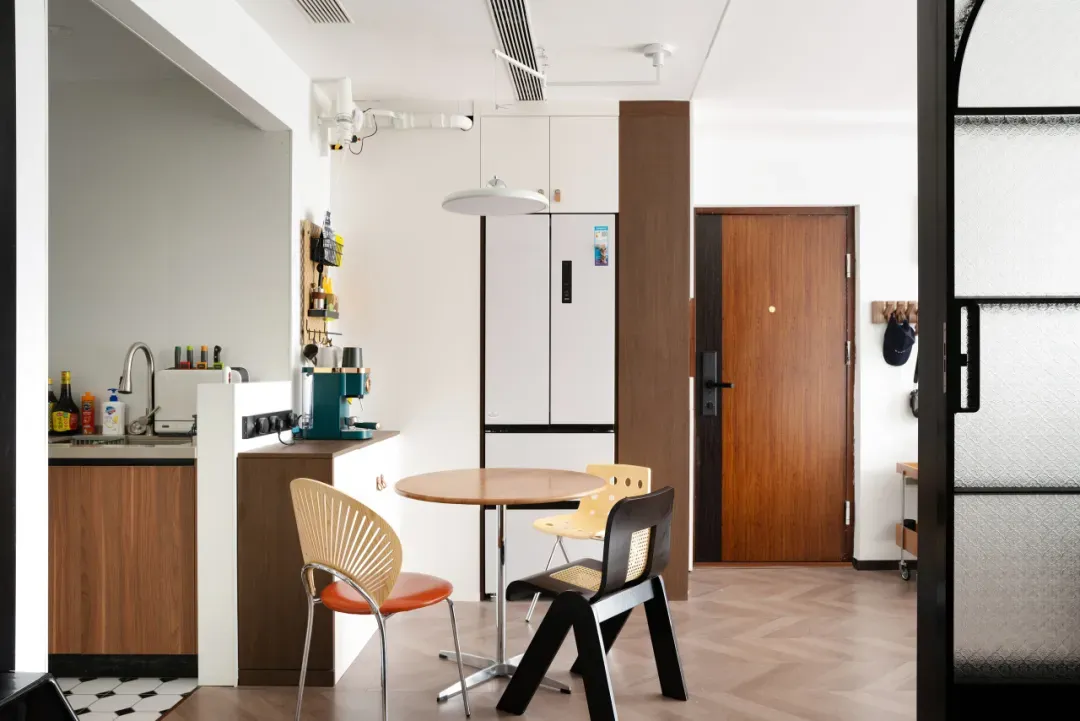 圆桌的智慧:放弃了最初设想的岛台,选择了更省空间、更具团聚感的小圆桌,让小户型显得格外通透。