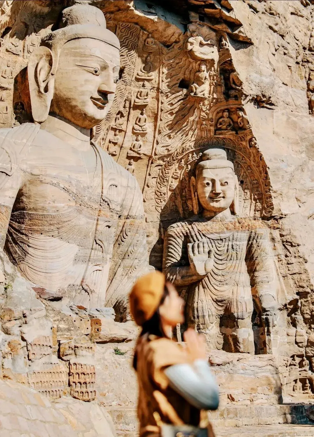大同因为《黑神话悟空》火出圈,它是一座承载着深厚文化底蕴和历史痕迹的城市,走进大同就仿佛翻开一本厚重的历史书籍每一页都散发着古老的气息!大同·古城夜景 我的城市-大同 夜晚的古城真的好美,真的好爱好爱这座城,每次来都有不一样的感受。华严寺|海内孤品,辽金巨刹;存辽金时期最大的佛殿之一。殿身东向,大殿面阔九间,进深五间,单体建筑面积达1559 平方米,矗立在4米余高的月台上,顶部覆盖筒瓦,黄、绿色琉璃瓦剪边。大雄宝殿上的匾额“大雄宝殿”和“调御丈夫”均为明代原物,作者为明代总兵马林。“大雄”和“调御丈夫”都是释迦牟尼佛的尊称。“慈悲之华,必结庄严之果”善化寺俗称南寺,大门是落成于金代初年的大型官式建筑,是现存最古老的金代建筑之一,更是我国屈指可数的殿堂式木构建筑,免门票,景区门口预约凭预约码进去即可,寺内主要参观为天王殿、三圣殿、大雄宝殿、普贤阁,◆大雄宝殿,辽金建筑,内有五方佛从东到西依次为东方阿閟佛、南方宝生佛、中央毗卢遮那佛、西方阿弥陀佛、北方不空成就佛。◆山门四大天王,在天王殿是明代塑像,天王的“表情包”太有意思了特别逗。