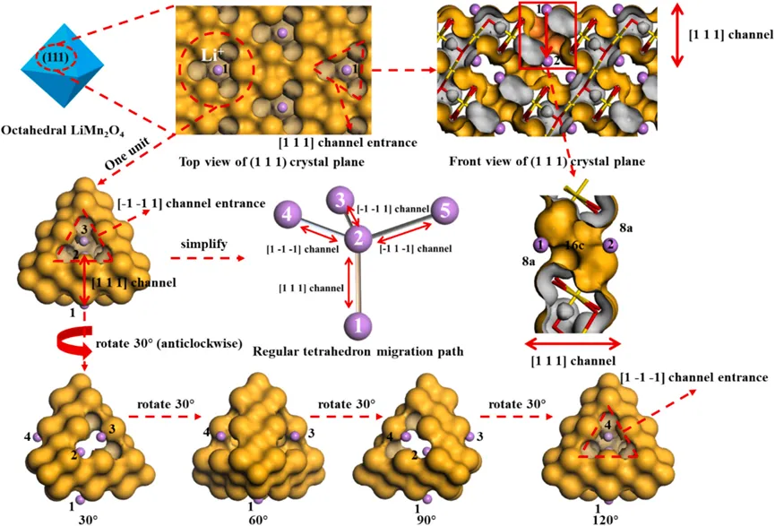 图2. Li+在LiMn2O4晶格中的嵌入与扩散规律图