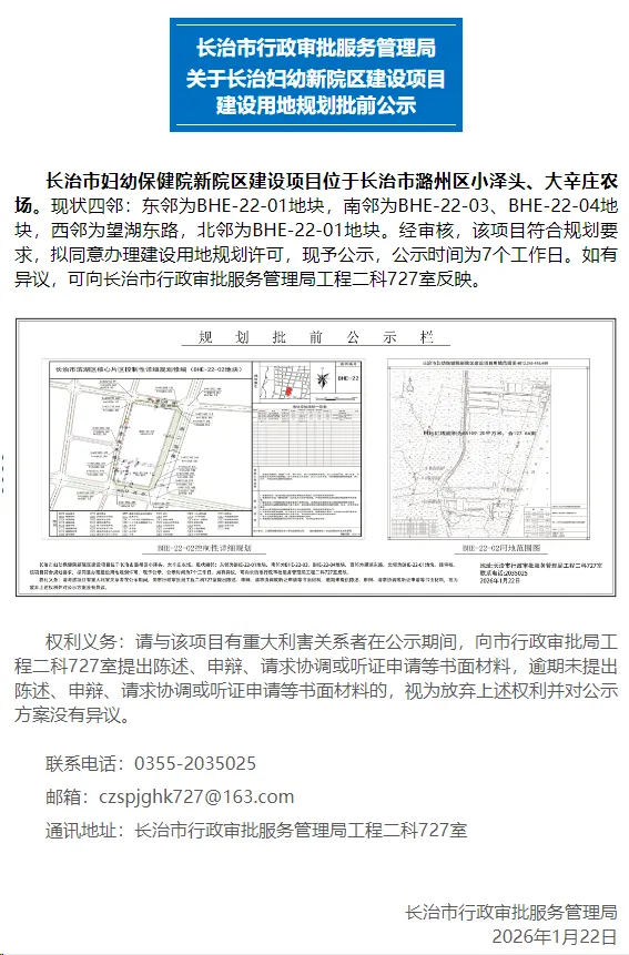 长治市行政审批服务管理局发布,关于长治市妇幼保健院,新院区建设项目建设用