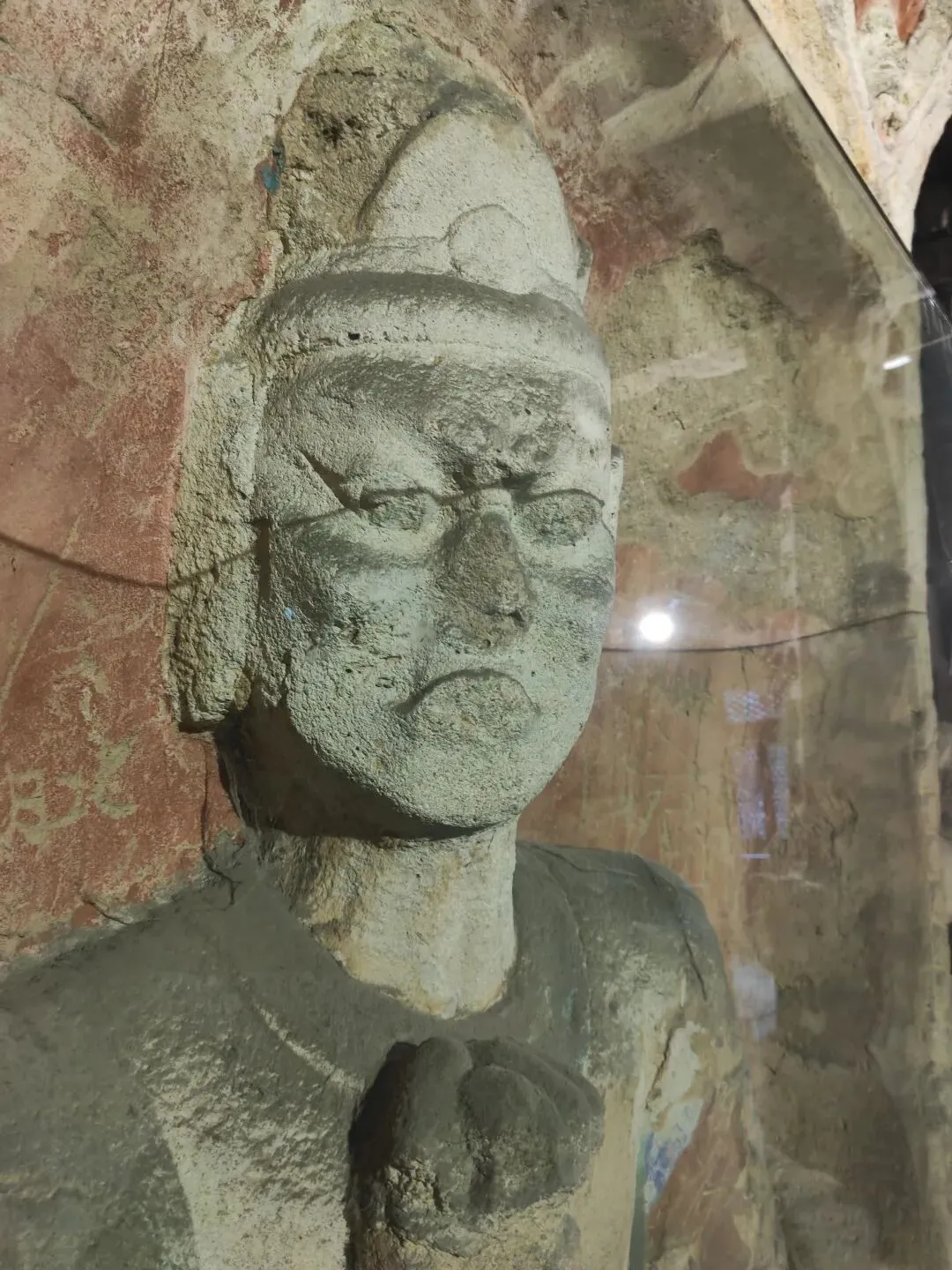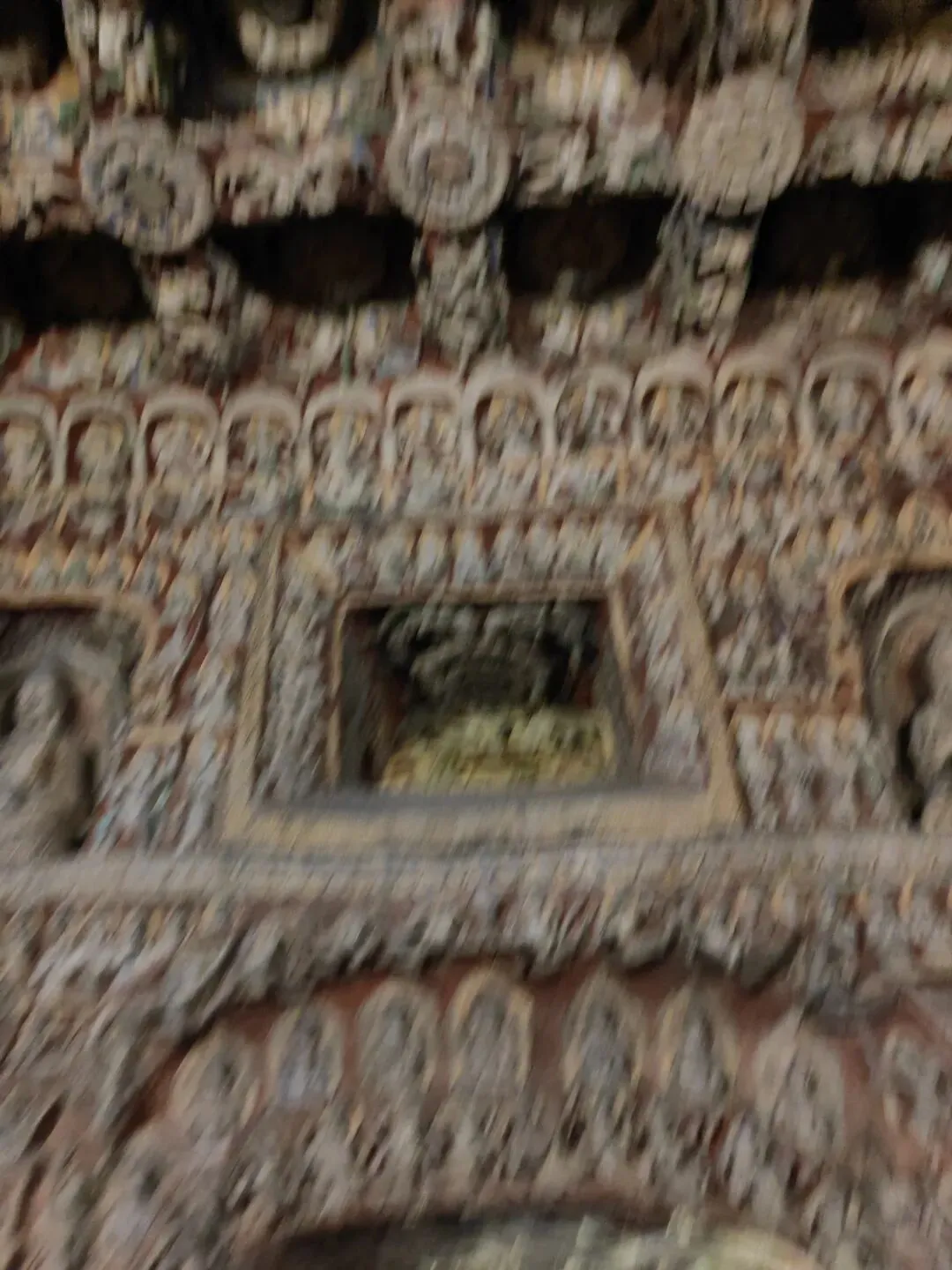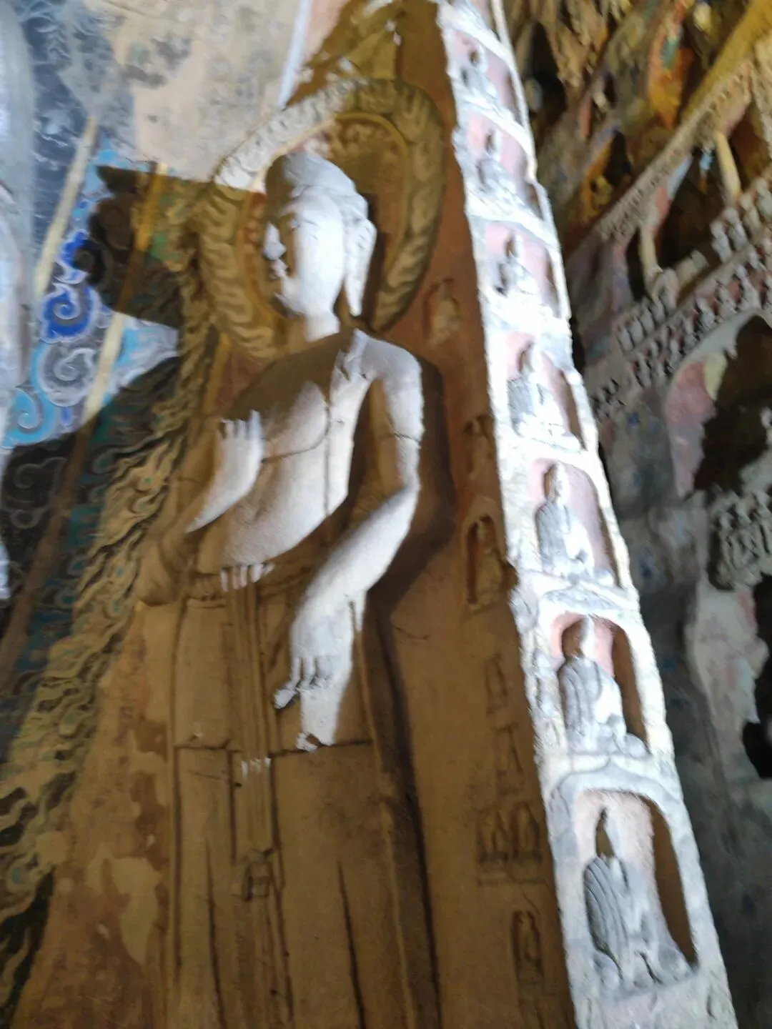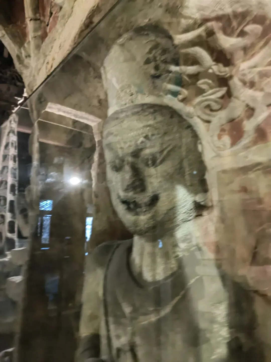 去年岁末严寒,和女儿一起大漠放逐、敦煌吹风,饱览了莫高窟的千年艺术精华。今年10月又顺路去了趟太原,参观了太原博物馆和晋祠,女儿还送了本《山西国宝》,这下被山西国宝深深迷住了,在这个岁末将至,周末抽空专门去趟塞北,去佛都大同。其实大同回来已有一段时间了,但大同带给我的震撼更强烈,以至于迟迟不敢轻易动笔。 西安到大同的动车下午一点多到大同南站,直接换乘景区直通车去云冈石窟。路过看到大同古城墙,冬日暖阳下的古城宁静而庄严,这座横亘北纬40°的古城,将三千年岁月沉淀为可触摸的温度,把塞北风情与文明底蕴揉成了浸润心灵的美,一走进就喜欢上这座城。 来到云冈景区入口,进去先是礼佛大道,是景区入口与石窟群的连接通道。两行石雕柱子位于礼佛大道两侧,对称排列着13对(共26根)骑象四棱柱。 神柱高8.73米,由黄沙岩雕刻而成。聚讲解这些石雕柱子是参照云冈石窟中第九窟和第十窟里的柱子复制的。柱体为八棱多立克柱式,柱身浮雕佛像及缠枝忍冬纹,寓意永生。 柱体上雕刻有多层小佛像,体现了“十方十世皆佛”的大乘佛教思想。塔柱上层四面雕有“四方佛”,四角由大象承托九级楼阁式方塔。每根神柱下方还雕刻着供养人,衣着服饰具有鲜明的北魏特色。底座为汉代博山炉造型,象征佛教供养法器。六牙白象驮塔,象征普贤菩萨,青毛狮子是文殊菩萨坐骑,体现了佛教护法精神。 我的拎包队友,刚到云冈景区灵岩寺就被佛光照见,幸哉! 灵岩寺里的香樟木雕佛像。历史上的灵岩寺是北魏文成帝时期(453年)高僧昙曜主持开凿“昙曜五窟”时所建的皇家寺院,是当时云冈石窟“十寺”(通乐、灵岩、鲸崇、镇国、护国等)之一,为皇家礼佛的 核心场所 。而现在的灵岩寺为2009年重建,进入云冈景区东侧就是灵岩寺,典型的北魏“一斗三升人字拱”风格,再现“皇家古院,山堂水殿”的历史风貌。 云冈石窟的开凿契机是公元398年,拓跋珪将都城从盛乐迁至平城,按照汉文化传统大规模营建,修建宫室、宗庙、社稷,设置司州,平城成为北方政治、经济、文化中心,汇聚中亚商人,器物与文化交融,为云冈石窟开凿奠定了基础。 道武帝拓跋珪信佛,迁都后就开始建佛寺。到了文成帝时,高僧昙曜主持开凿昙曜五窟(16-20窟),云冈石窟成为佛教艺术中国化的开端。 我们租了景区讲解器,刚走进石窟群看到的这个小型窟龛已经风化严重,聚讲解:云冈石窟的砂岩岩体易吸水且酥松,山体内部的水汽渗透加上外部的风吹日晒,使得这类外露的小型造像成为风化最严重的部分之一,也直观展现了千年石窟在自然侵蚀下的岁月痕迹。 这尊应该是北魏晚期的民间石窟,规模小,佛像清瘦小。今天的云冈石窟天气特别好,湛蓝的天空让人对大同从煤城污染严重到现在综合治理后的环境有了新的印象。先讲解第1、2窟(双窟),这是云冈最早开凿的一组双窟,第1窟中心为仿汉式楼阁塔柱,第2窟中心为方塔,体现了北魏时期佛教与汉地建筑的融合。由于碰上施工暂不开放。所以往前走到第3窟,这是云冈体量最大的石窟:高约45米,开窟面阔达50米,前面的断崖高25米,是云冈所有洞窟里最宏伟的一座。 分为前后室,前室立壁分上下两层,上层有12个方形梁孔,推测当年窟前曾建有面阔十一间的木构寺庙,这也是它“灵岩寺洞”名称的由来。始凿于北魏时期,但因历史变故并未完工,现存的一佛二菩萨造像(西方三圣)是隋唐时期续刻的,风格与北魏造像有明显不同。这也是未完成的遗憾。 今天天气好,蓝天衬托下更显得宏伟沧桑。刚好也是未开放,未能入内。云冈石窟第5、6窟是一组双窟,是云冈石窟中保存最完整、内容最丰富、雕刻最精美的洞窟之一 。 第5窟后室北壁主像为三世佛,中央坐像高17米,是云冈石窟最大的佛像。 第6窟:窟平面近方形,中央是一个连接窟顶的两层方形塔柱,高约15米。塔柱四面大龛两侧和窟东、南、西三壁以及明窗两侧,雕出33幅描写释迦牟尼从诞生到成道的佛传故事浮雕,此窟规模宏伟,雕饰富丽,技法精炼,是云冈石窟中最有代表性的一个。今天这两个窟正常对外开放,人也少,可以进去一饱眼福。尤其6窟真的是一座有历史厚重感的雕刻博物馆。第七窟南壁上的六女神,梁思成林徽因夫妇认可的北魏女神。多美的笑,让人一下忘掉所有烦恼。菩萨的笑是那么传神,穿透千年时光依然能感染我们。 这尊交脚而坐的造像为弥勒菩萨,是未来佛的象征,其头戴宝冠、身佩璎珞的装饰风格,体现了北魏时期皇家造像的华丽特征。也是第六窟精美的石刻艺术典范。随手拍一张都是登峰造极的艺术精品。 午后阳光洒在石窟入口,给石窟披上了彩色的外衣。这里就是七、八窟。洞窟外的木构楼阁是后世为保护石窟而建的。 今天第7、8两窟正常对外开放。这以华丽的“五华洞”风格著称,外壁布满菩萨、力士和飞天浮雕,装饰极为精美- 双窟政治寓意:第7、8窟的双窟设计,对应北魏中期“二圣并尊”(冯太后与孝文帝)的政治格局,体现了佛教艺术与皇权的紧密结合。 既保留了早期犍陀罗艺术的粗犷厚重,又展现了中期汉化风格的细腻飘逸,是云冈石窟从“胡风”向“汉韵”转变的关键节点。 从护法神的印度教元素到飞天的中原审美,反映了北魏时期丝绸之路的文化交流与包容。 这尊菩萨像也是云冈里唯一的露齿微笑菩萨。第九窟入口最显著的特征是仿希腊神庙式的
