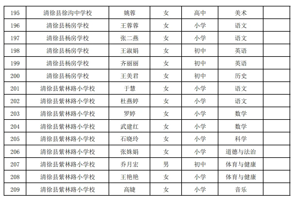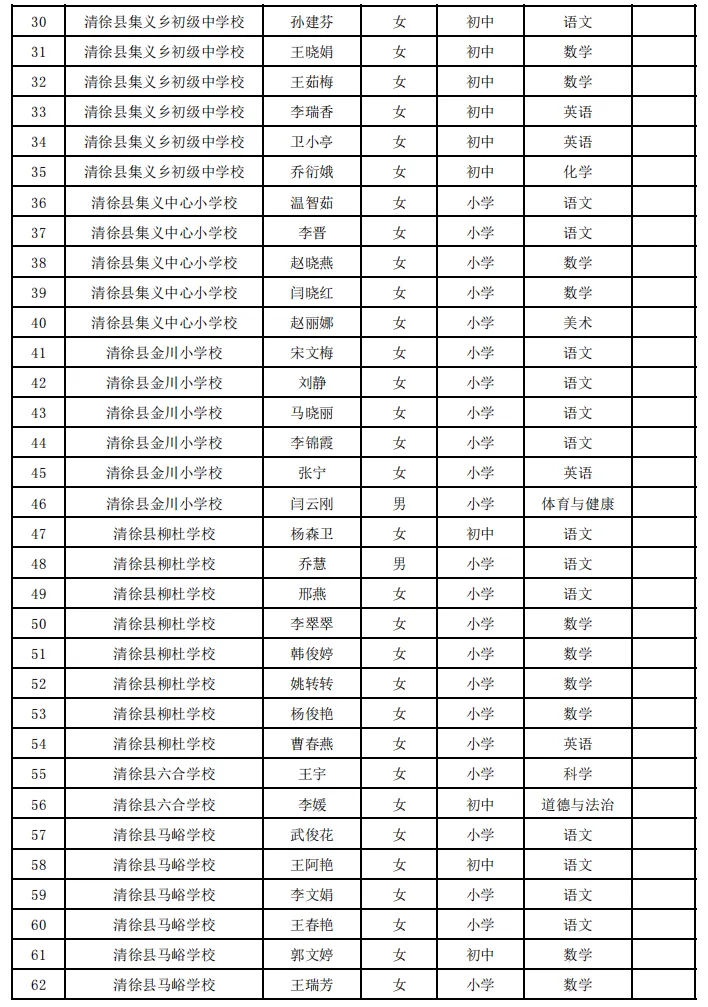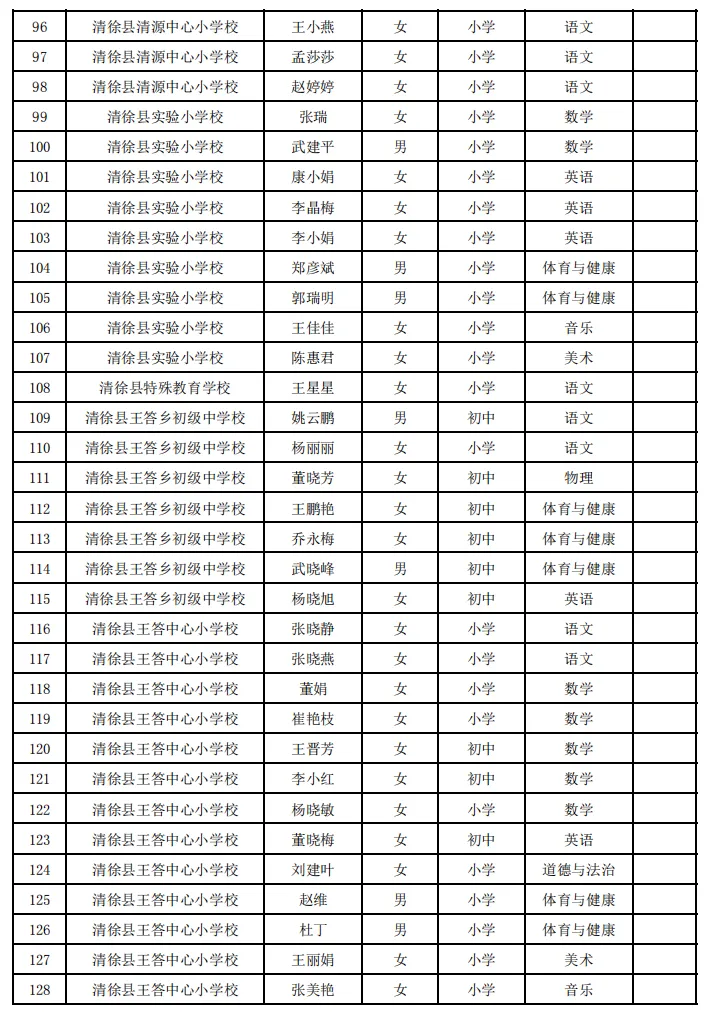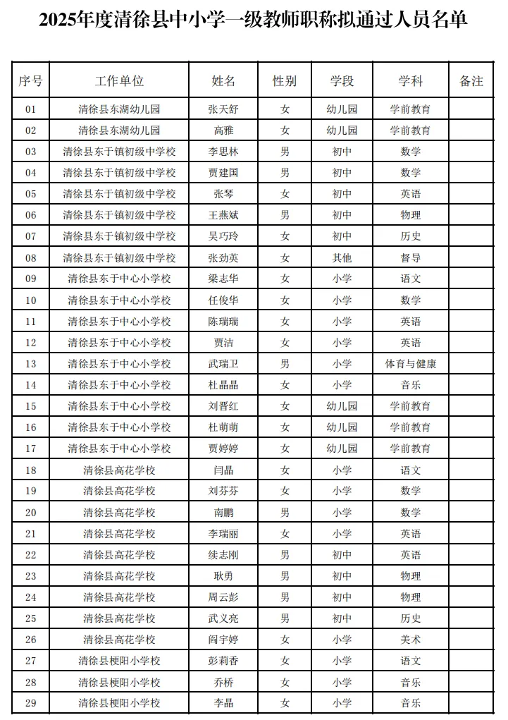 附件:2025年度清徐县中小学一级教师职称拟通过人员名单为方便学生更好的了解各阶段学习信息