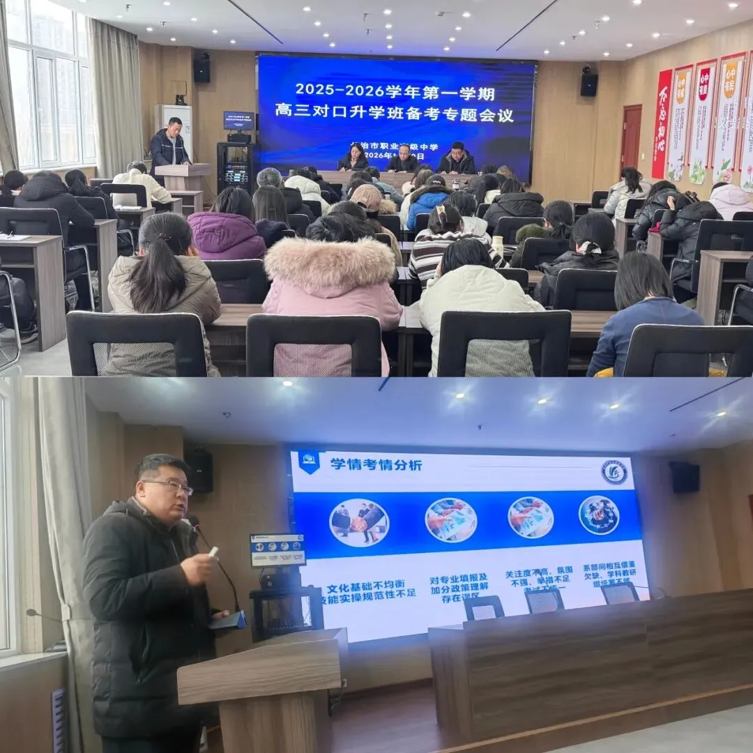 1月30日下午,我校在行政楼四楼党员活动室召开高三对口升学班备考专题会议。校党委委员刘艳军、教务处主任梁建军、各系部高三班主任和任课教师参加,以“政策为纲、录取为标、备考为要”为核心,全面部署下一阶段备考工作。会议由教务处副主任李淑芳主持。