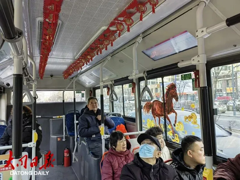 2026年的春运大幕即将拉开,大同市公交七分公司以“安全第一、服务至上”为宗旨,在全面部署春运安全生产工作的基础上,率先在61路公交车厢内推出了马年新春主题氛围车厢,通过手绘灵动骏马等创意举措,让流动的公交车厢成为传递新春祝福的“移动风景线”,为归乡旅客与市民出行注入浓浓暖意。