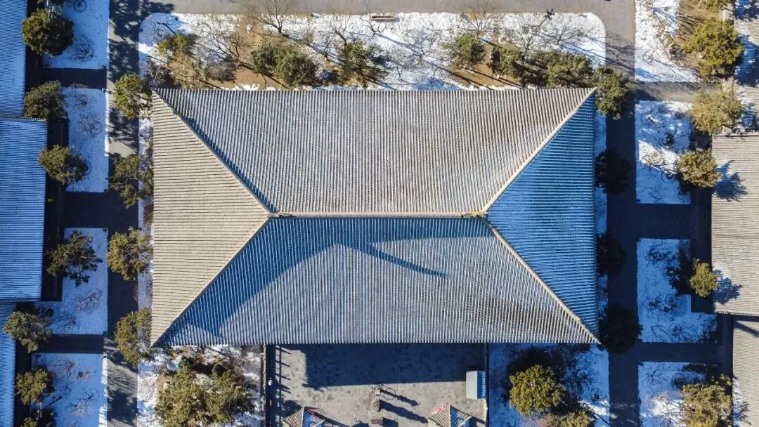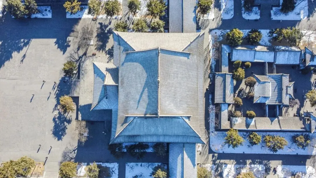 华严寺建筑依东西轴线布局,寺内山门,普光明殿,大雄宝殿,薄伽教藏殿,华严宝塔等30余座单体建筑分别排列在南北两条主轴线上