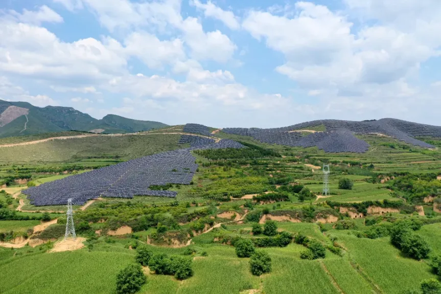 远古的神话与现代的光伏板,被一阵山风轻轻挽起,那是旧时光的余温,也是新日子的底色。