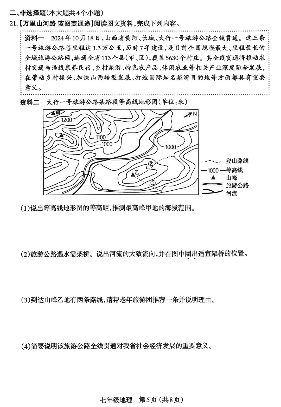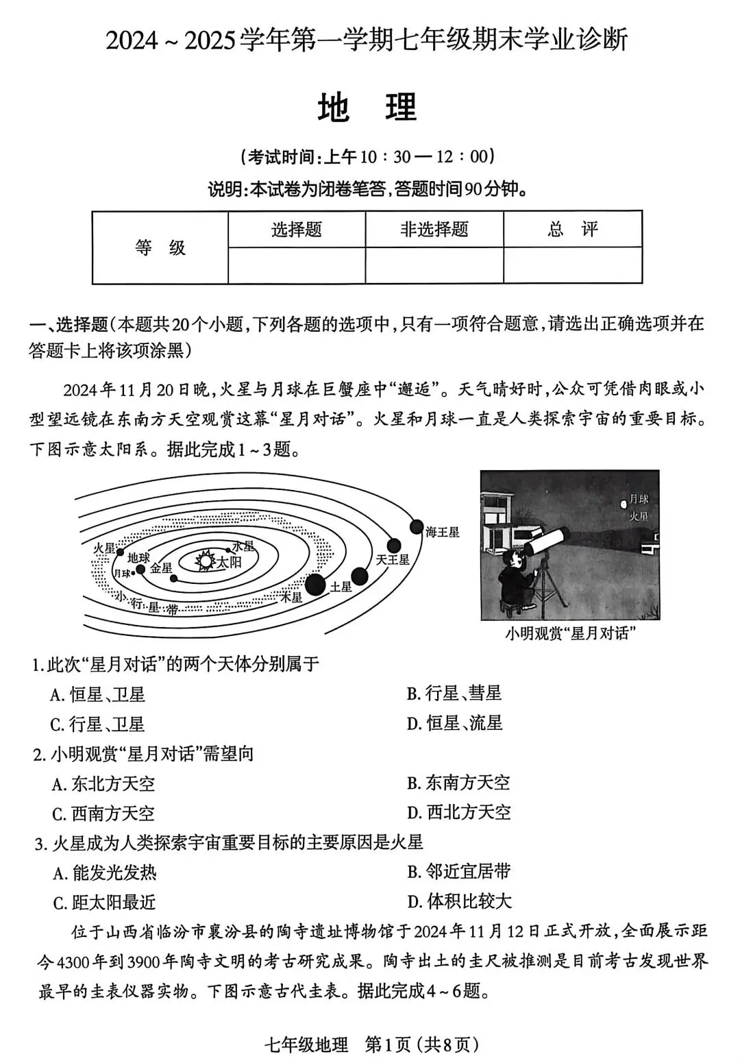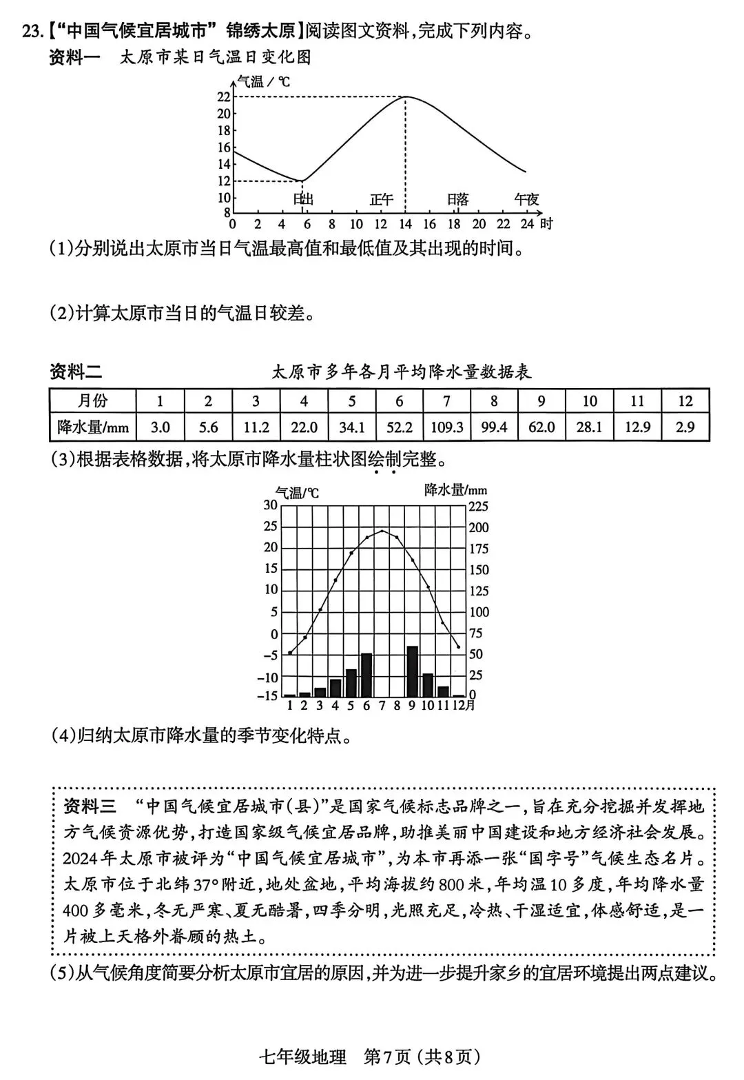 2025—2026学年山西省太原市七年级上期期末地理试卷