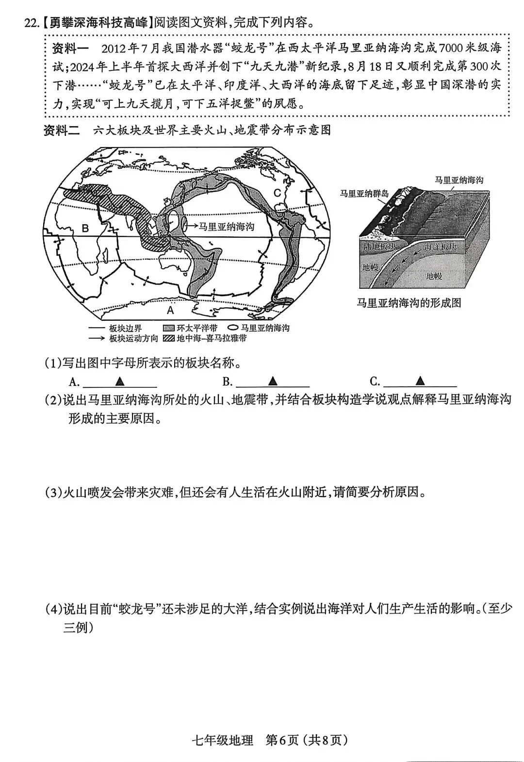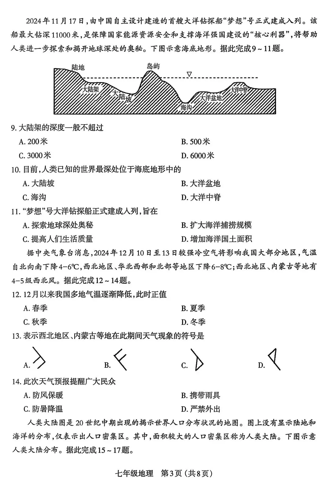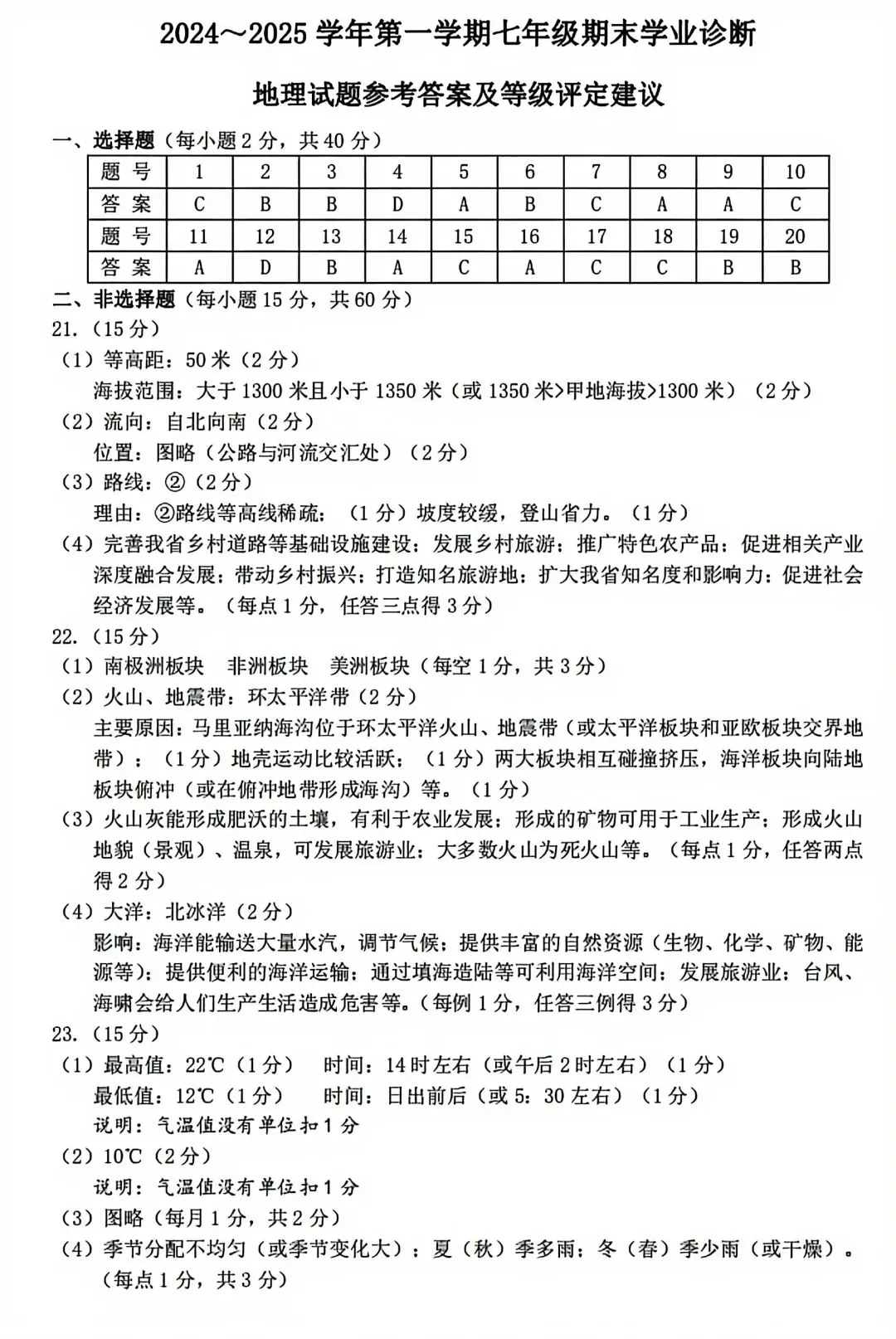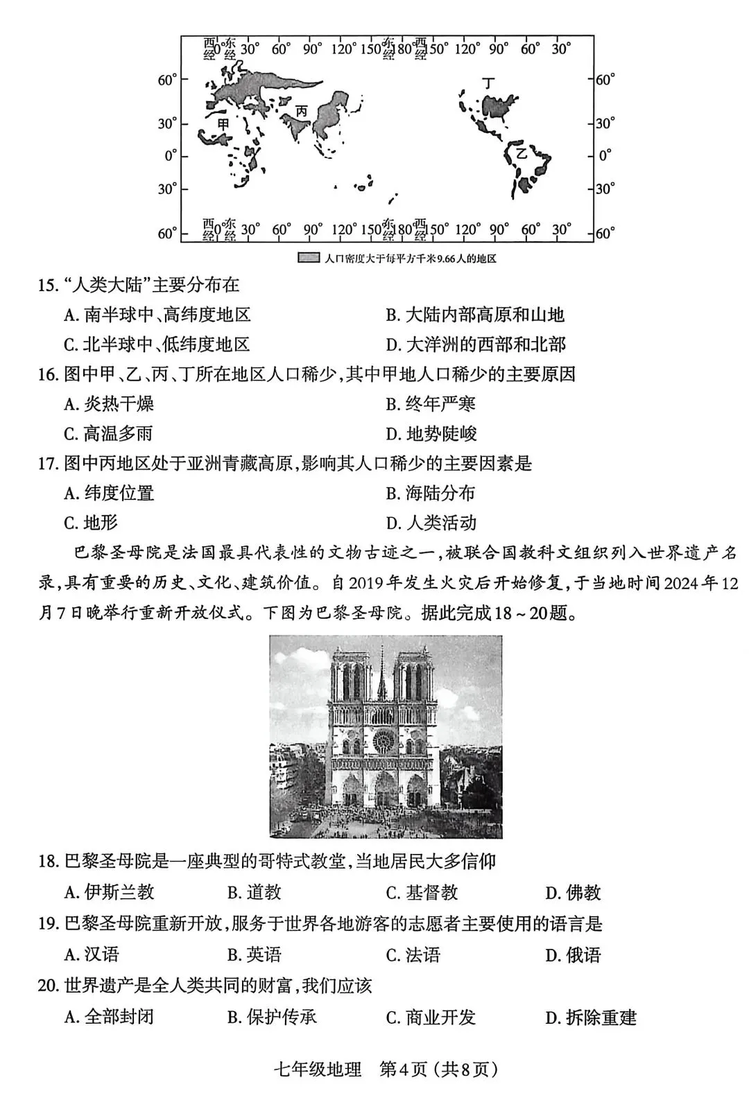 2025—2026学年山西省太原市七年级上期期末地理试卷