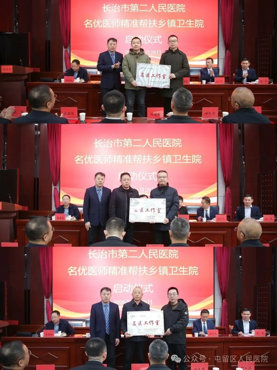 随后,长治市第二人民医院党委委员、副院长段云飞宣读了《长治市第二人民医院强基工程实施方案》,明确了帮扶工作的目标与路径。医院党委副书记、院长何跃文为相关乡镇卫生院名医工作室进行了授牌。