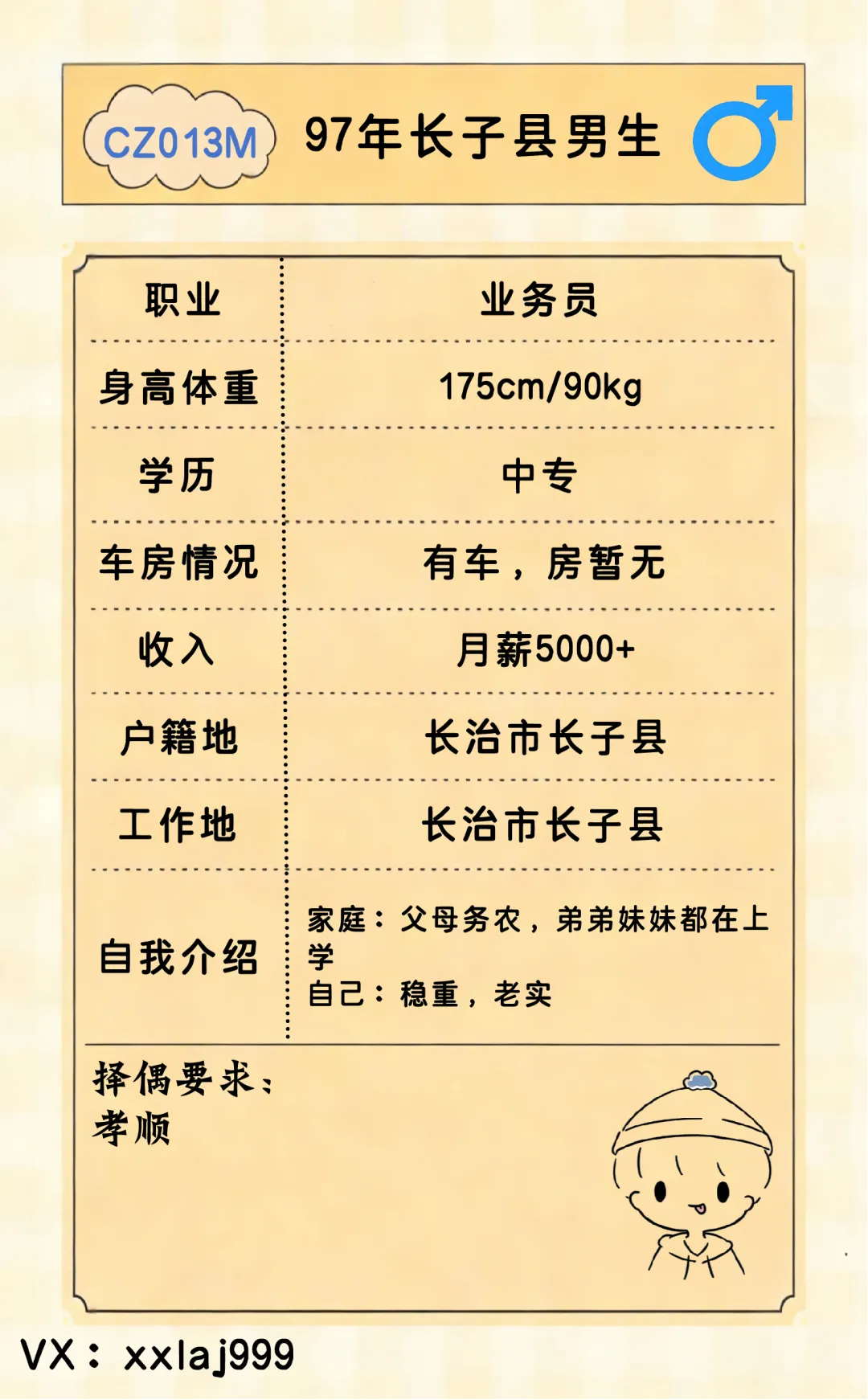 >【CZ013M】97年长治市长子县男生,职业是业务员,稳重老实的男生