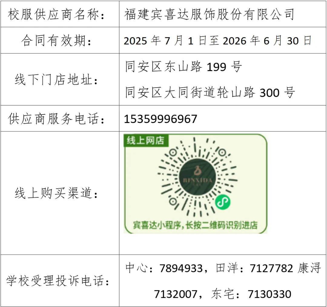 为做好我校校服购买与售后服务工作,现将校服供应商相关信息公示如下: