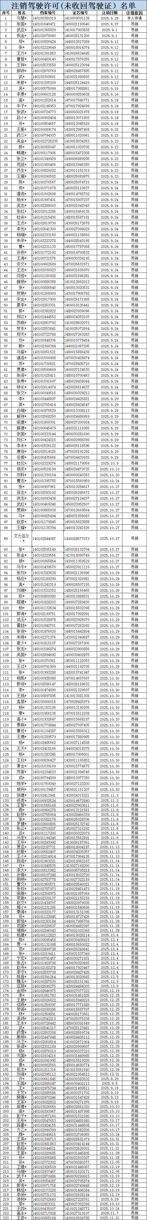 太原交警:这223人驾驶证作废!