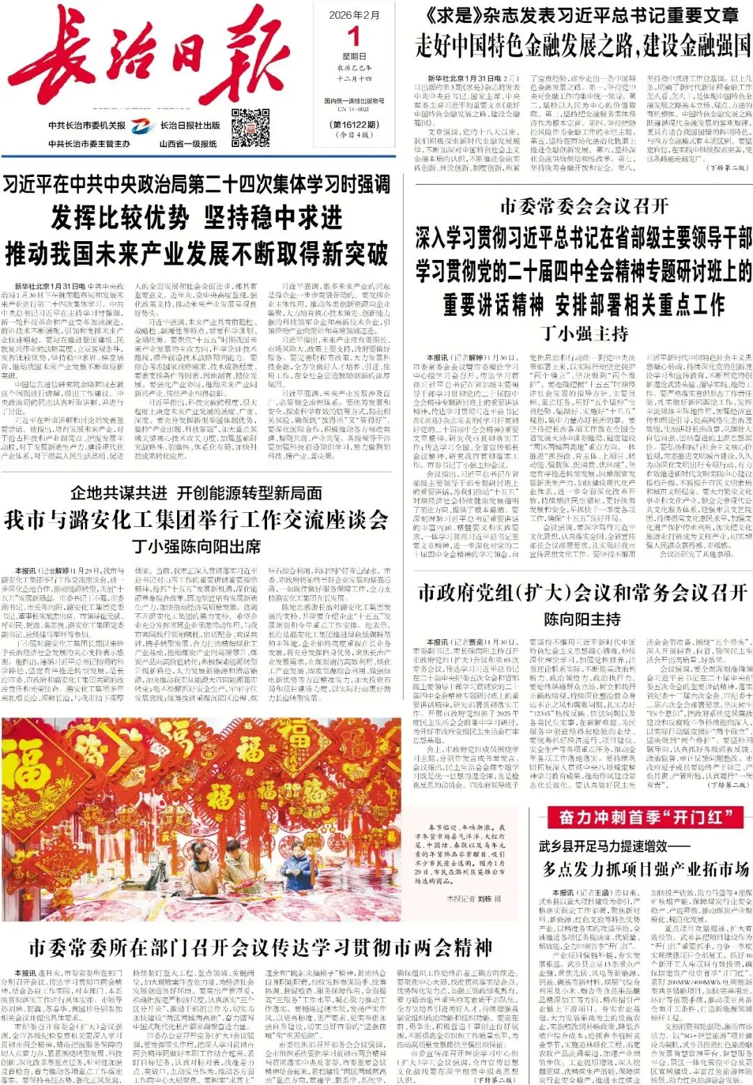《长治日报》2026年2月1日版面速览