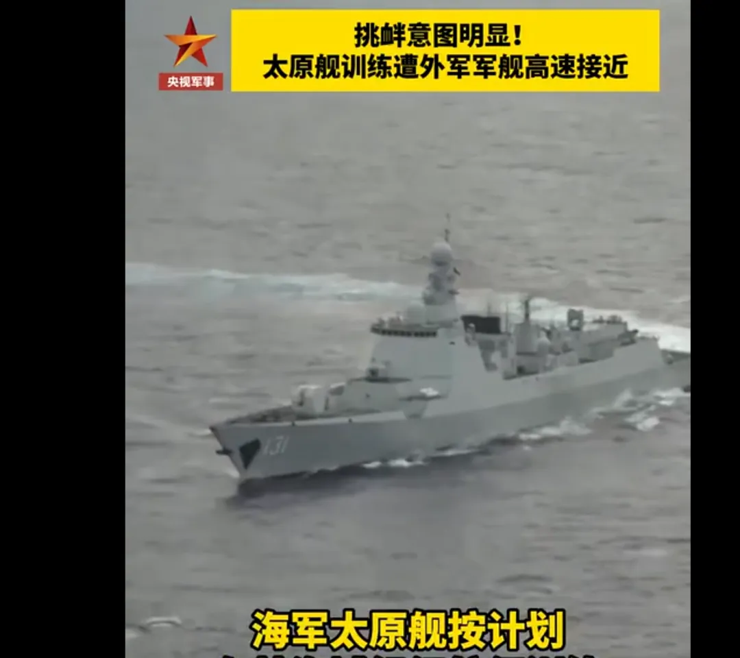 据央视军事报道,不久前,在海军“太原舰”按照例行演训计划在远海某海域执行训练任务期间,某国大型水面舰艇突然从“太原舰”侧后方高速接近,直接冲向“太原舰”正常航路右前方,外军意图肇事挑衅,现场形势一度“剑拔弩张”。据央视报道称,外方舰艇妄图利用危险动作切入“太原舰”行驶海域,用近距离“极限施压”和“航线封堵”的方式试探中方反应时间和反应能力。