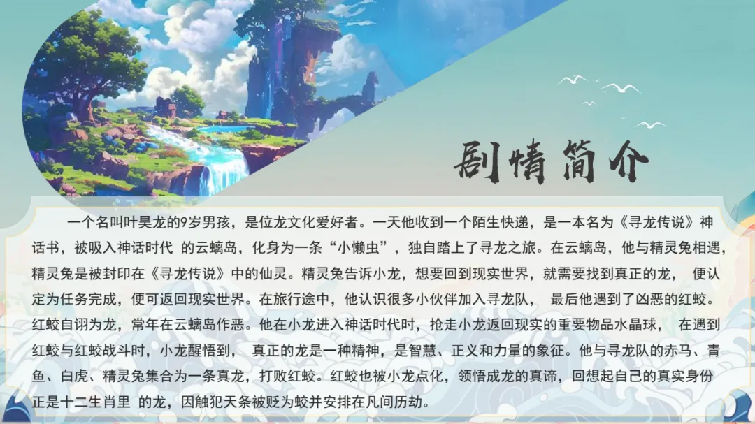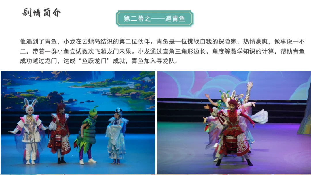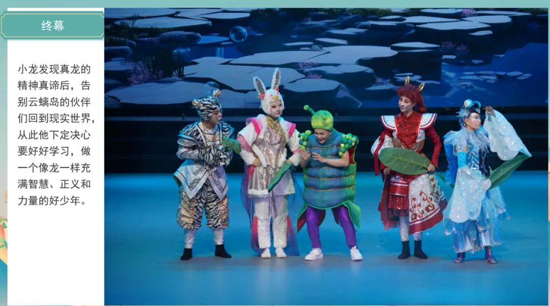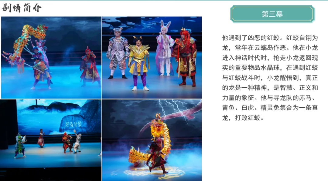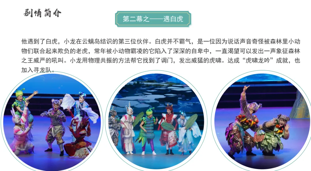 儿童剧《望子成龙》就是围绕中华文化精神符号“龙”的精神号召力为创作核心,以“美育”“思政”“国学”为内容关键词,讲述发生在一个普通男孩身上的神奇故事:一个逃避学习的普通男孩小龙穿越进入神话世界,为返回真实世界,勇敢克服胆怯,用智慧与知识的力量解决困难,并结识伙伴,寻龙并最终成龙。最后小龙认识到文化知识可以帮助他人、可以解难释疑,还领悟到做人要像神龙一样不仅勇敢还要有智慧。剧院地址