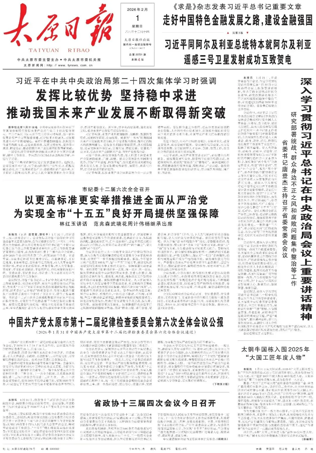 ▶《太原日报》2026年1月31日版面速览