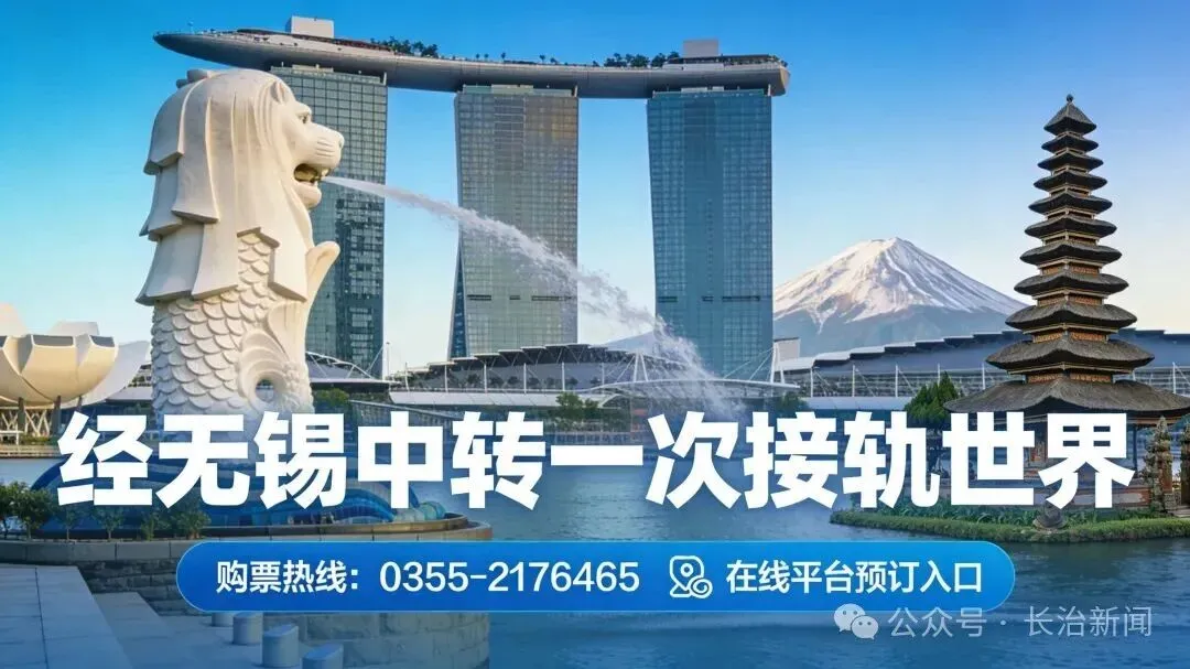 吉祥航空将依托自身航线网络优势,为长治旅客提供经无锡至新加坡、济州岛等城市的国际中转联程服务,进一步拓展晋东南地区的航空通达性,一次转机就能接轨世界!
