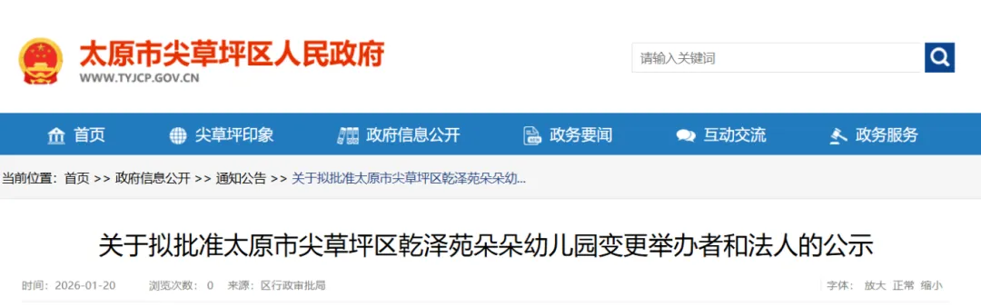 根据《中华人民共和国民办教育促进法》第五十四条、《中华人民共和国行政许可法》第三十六条等有关规定,依申请,经审查拟批准太原市尖草坪区乾泽苑朵朵幼儿园变更举办者和法人予以公示。
