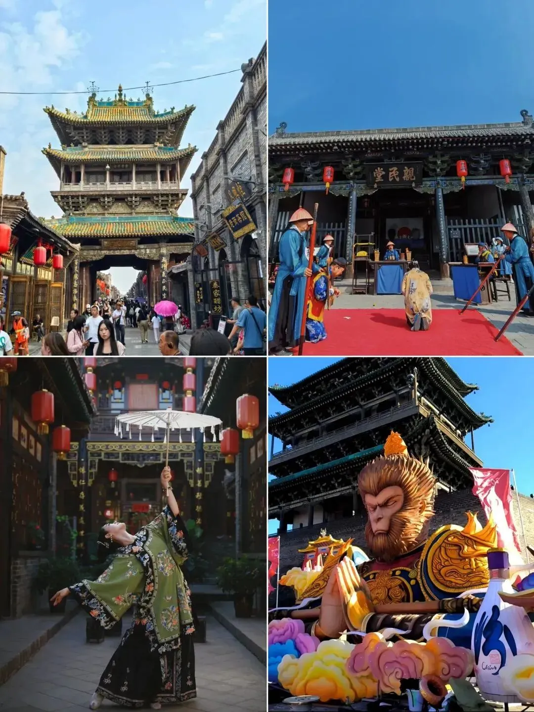 D3|平遥古城-北京- 07:00|起床吃早饭,之后自由闲逛【平遥古城】。平遥古城是一个相对于独立的古城,城门内外“各成一派”。古城保存较为完整,建筑风格保持着传统的构架。推荐大家可以自费去看看日升昌票号,那是中国最早银行,还有古县衙,这里上下午会进行升堂表演,可以提前打听表演时间,提前准备观看,也可以去文庙——平遥古城最出名的景点之一。大家也可以在城里的老字号买些陈醋、酱肉等,味道都是不错的。- 中午|适时我们在平遥古城集合返京。午餐大家提前准备好,可以在车上和大家一起分享!- 晚上|我们约20:00到达北京,感谢这次的同行,期待下次的相遇! *以上行程时间仅供参考,受天气、交通、客流、景区调控及队员体能等不同影响有可能会调整,以领队实际安排为准。