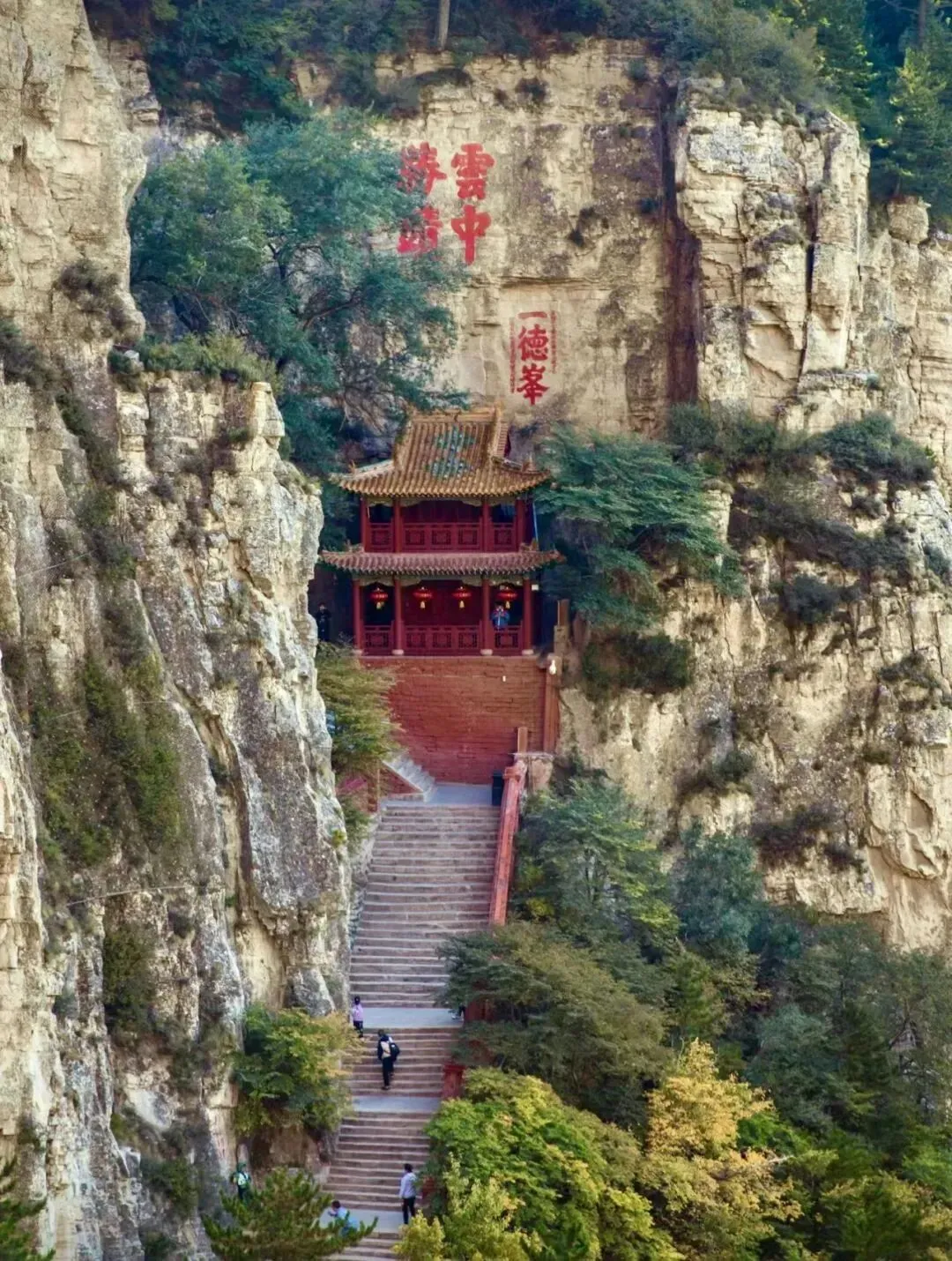 悬空寺悬空寺位于山西省大同市浑源县恒山金龙峡西侧翠屏峰的峭壁间,素有“悬空寺,半天高,三根马尾空中吊”的俚语,以如临深渊的险峻而著称。建成于1400年前北魏后期,是中国仅存的佛、道、儒三教合一的独特寺庙。