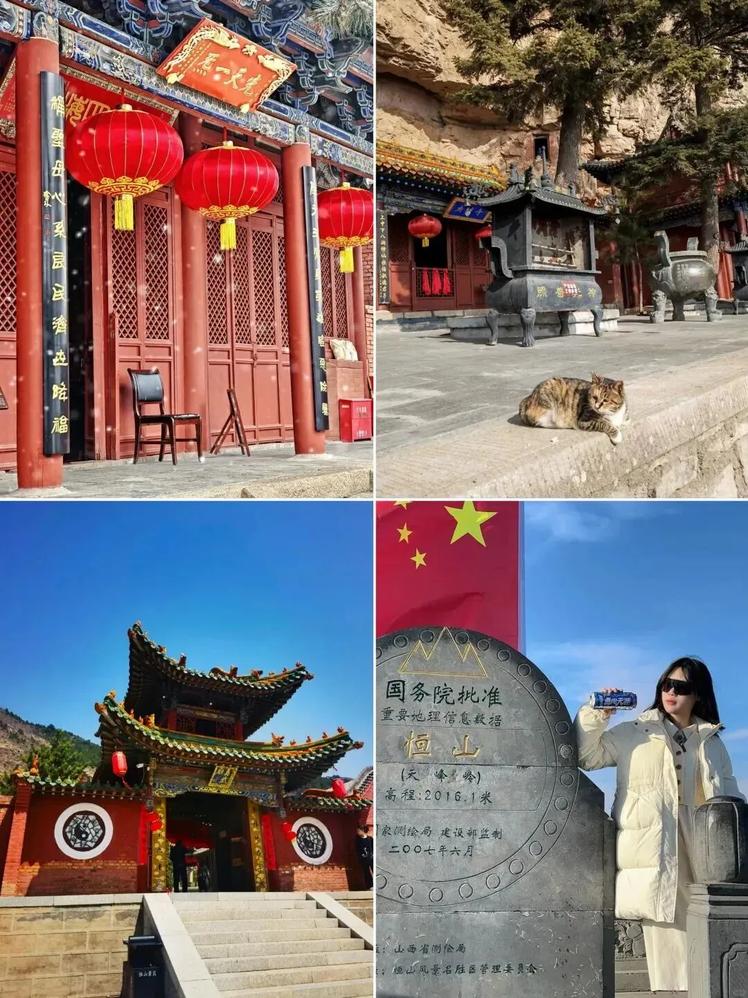 D1|北京-悬空寺-恒山-大同(宿)- 07:30|请按集合信息通知准时集合出发,一路欢歌笑语开始行程,中午在服务区自由午餐。- 下午|到达【悬空寺】参观游览。悬空寺就像悬挂在悬崖之上,全寺为木质框架式结构,值得惊叹的是它依靠榫接结构,嵌入崖内而不倒,距今已有1500多年历史,是国内现存最早、保存最完好的高空木构摩崖建筑,诗仙李白观后醉书壮观,徐霞客赞为天下巨观。- 之后集合前往【恒山】游览。恒山是“五岳”中的北岳,也是道教圣地,相传八仙之一的张果老就是在恒山修行得道,恒宗殿山门前的103级陡阶,会仙府有许多壁刻,以“天地大观”、“壁立万仞”最为醒目,周边还有玉皇阁、御碑亭、琴棋台、通元谷等景观。- 适时集合前往酒店住宿。- 晚上|自由活动,大家可以寻觅山西美食,尝尝山西特色刀削面,吃饱喝足后看看大同夜景。住宿:大同酒店(2人标间)