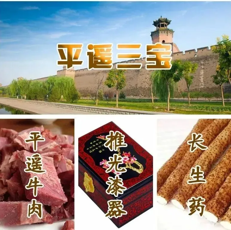 平遥特色平遥三宝:平遥牛肉、迷人的漆器、神奇的长山药常见特色:山西酒(杏花村、汾酒、竹叶青)、各种醋。山西美食:山西的饮食习惯偏淡,餐餐都需要辣椒和醋的陪伴,主要的美食小吃有平遥牛肉,曹家熏肘,叫花鸡,碗托子,酱梅肉,平遥大烩菜,包皮面,握溜溜,油糕,煮疙瘩,糊塌子,剔尖,刀削面,剪刀面,搓鱼儿,石头饼,蘸尖尖,蘸片则,豆面抿尖,猫耳朵,玉米发糕,和和饭,切疙瘩,玉米窝窝头,拨烂子,凉糕,过油肉,菜饭,油茶,玉米黄煎,酒枣,拉面,馏圪蚪,干面饼子,黄菜火烧,莜面栲栳栳,水煎包,红面糊糊,擦圪蚪,豆腐脑等。