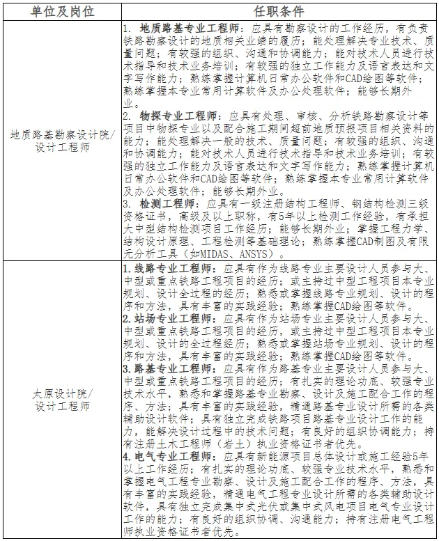 1.具有大学本科及以上学历,地质路基、物探、检测、线路、站场、电气工程及自动化等专业;