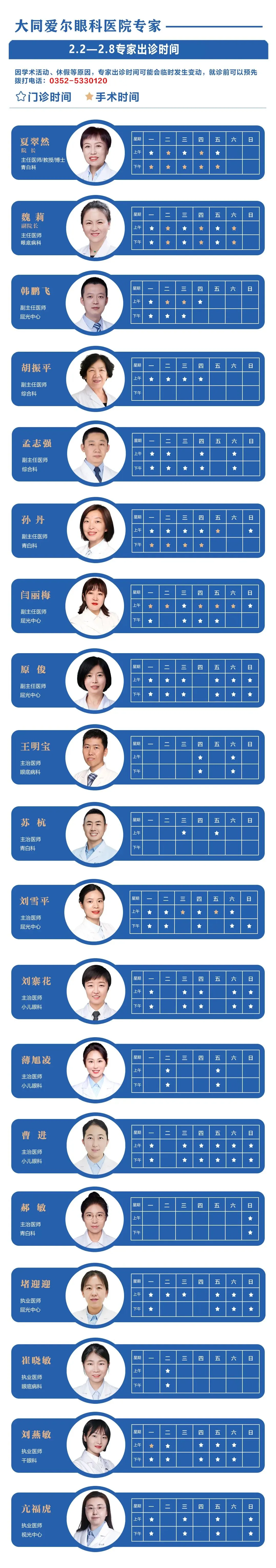 >大同爱尔眼科医院2月2日-2月8日门诊排班表!