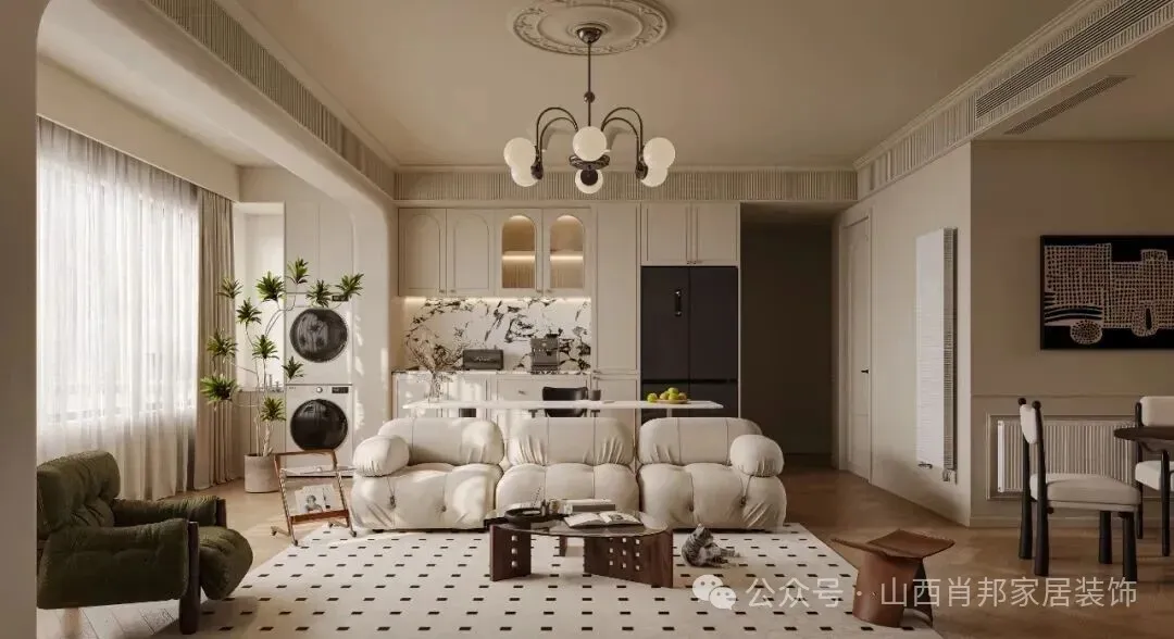 风格统一:先确定大风格(如原木、奶油、现代简约),所有软装单品都向它靠拢。例如,奶油风选米白、浅咖色系的棉麻、绒布沙发;现代风选线条利落的豆腐块沙发。